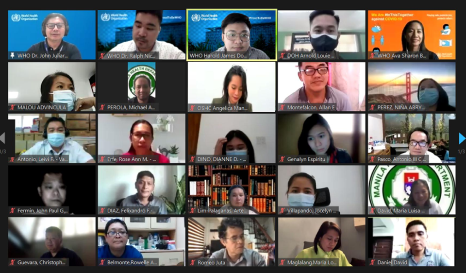 To enhance workplace safety, the World Health Organization (WHO) Country Office in the Philippines, in partnership with the Department of Health (DOH) Center for Health Development Metro Manila and in collaboration with the Occupational Safety and Health Center (OSHC) of the Department of Labor and Employment (DOLE) conducted a session on ‘COVID-19 Response in the Workplace’ for safety officers of local government units (LGUs) on 30 April 2021.