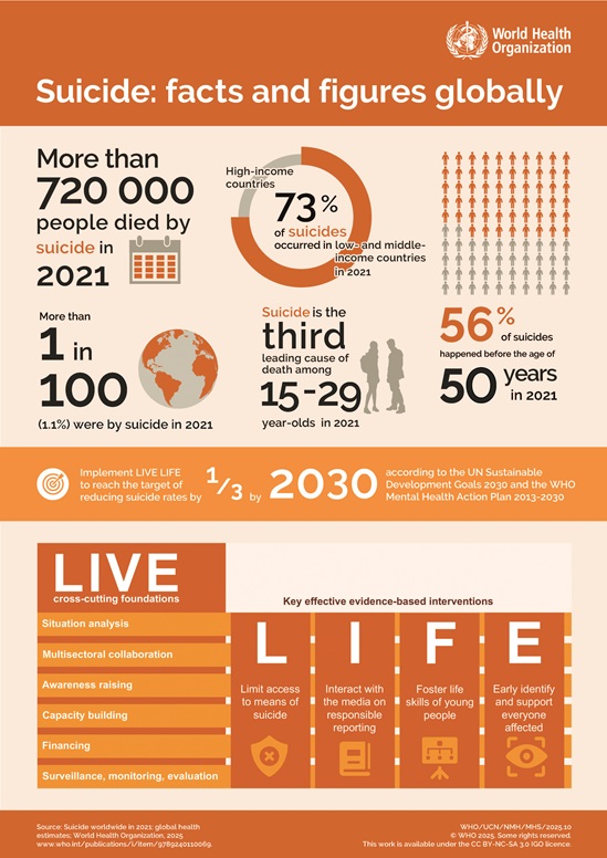 Globally, mental disorders account for 1 in 6 years lived with disability. People with severe mental health conditions die 10 to 20 years earlier than the general population. And having a mental health condition increases the risk of suicide and experiencing human rights violations.