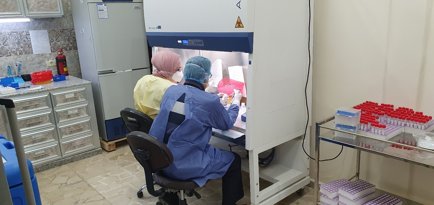 Photo Caption: Influenza and SARS-CoV-2 lab testing through the integrated surveillance approach at the new peripheral laboratory in Aleppo.