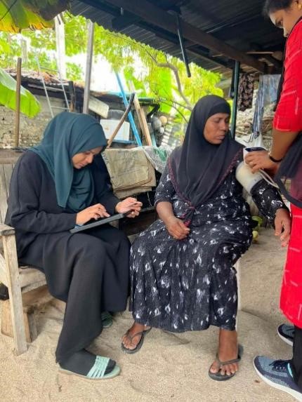 Door-to-door health screening for NCDs within Faafu Atoll. The information is being entered into the DHIS2 system using handheld devices.