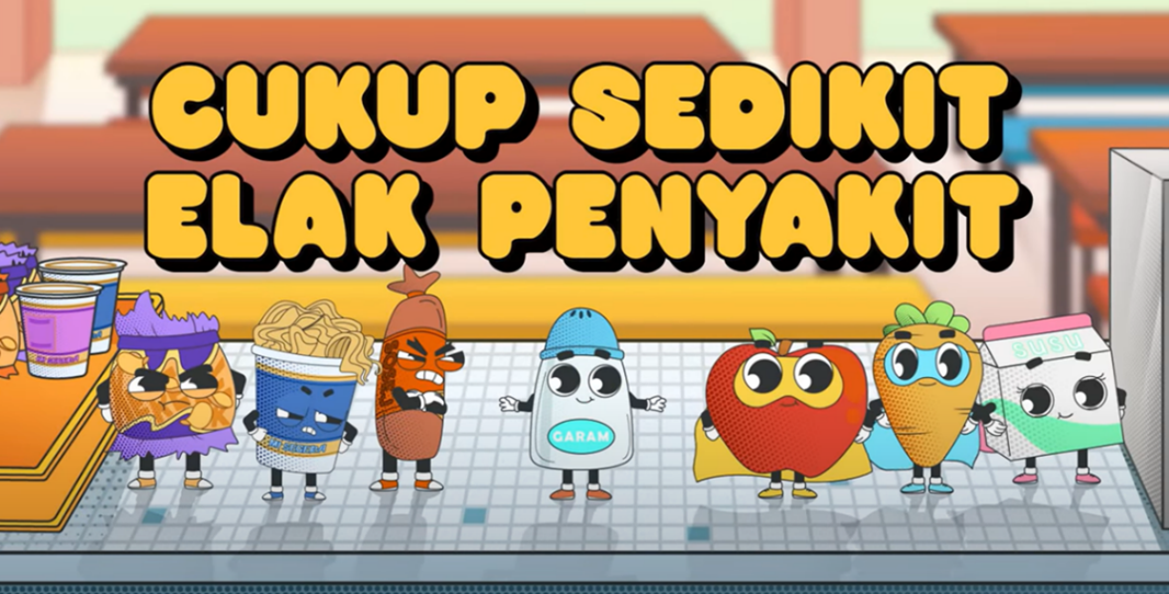The memorable slogan 'cukup sedikit, elak penyakit' (just a little, avoid disease) was incorporated into all communication materials and social media campaigns, including this animated video.