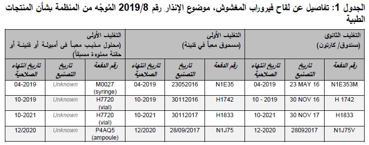 - أرقام الدفعات H1833 وH1742 و N1J75Vمغشوشة.