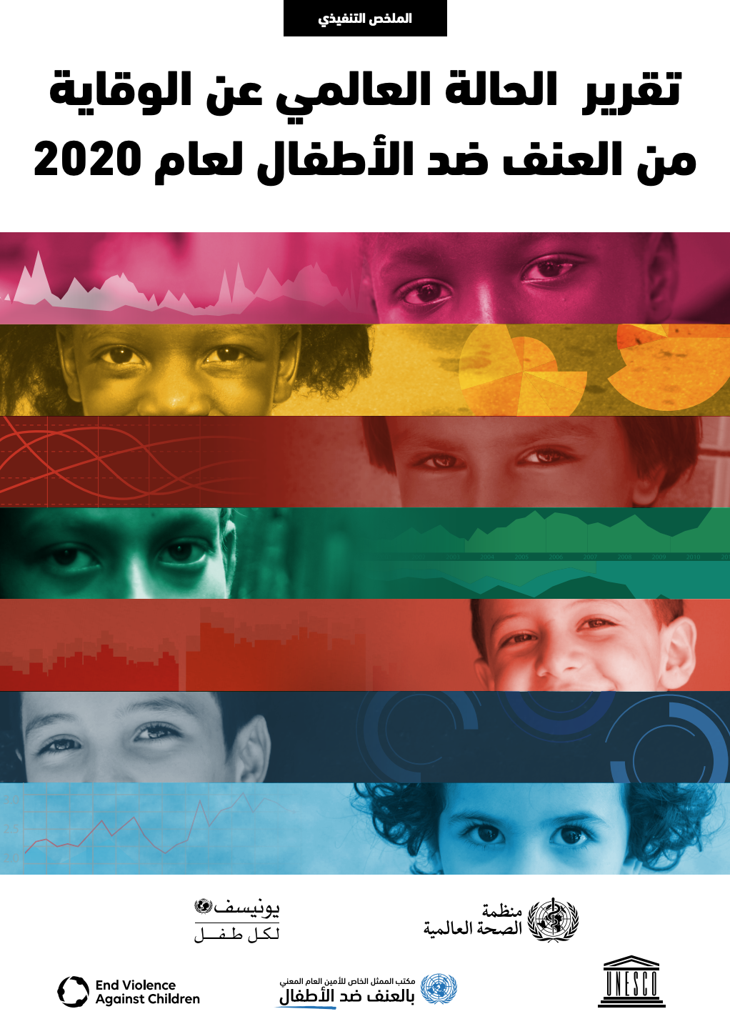 يتناول تقرير الحالة العالمي عن الوقاية من العنف ضد الأطفال لعام 2020 ما أحرزته البلدان من تقدّم في تحقيق أهداف التنمية المستدامة الرامية إلى وضع حدّ للعنف ضد الأطفال. ويستند هذا التقرير الصادر بشكل مشترك عن منظمة الصحة العالمية واليونسيف واليونسكو والممثلة الخاصة للأمين العام للأمم المتحدة المعنية بالعنف ضد الأطفال والشراكة العالمية من أجل إنهاء العنف ضد الأطفال، إلى مدخلات تم تجميعها مما يزيد على 1000 من صنّاع القرار في 155 بلداً، استناداً إلى تقييم حالة الوقاية من العنف في بلدانهم من خلال تطبيق النُهج المسندة بالبيّنات المحددة في حزمة إنسباير: الاستراتيجيات السبع لإنهاء العنف ضد الأطفال. ويُظهر التقرير أنه في حين اتخذت العديد من البلدان المشاركة إجراءات بالفعل في هذا الصدد، فإن المسؤولين الحكوميين من هذه البلدان نفسها يعترفون بأن جهودهم لا تكفي بكل وضوح لبلوغ غايات أهداف التنمية المستدامة ذات الصلة. ويخلص التقرير إلى توصيات ترمي إلى تعزيز الجهود الرامية إلى تطبيق إجراءات حزمة إنسباير وتسريع وتيرة التقدم المحرز على المستوى الوطني.