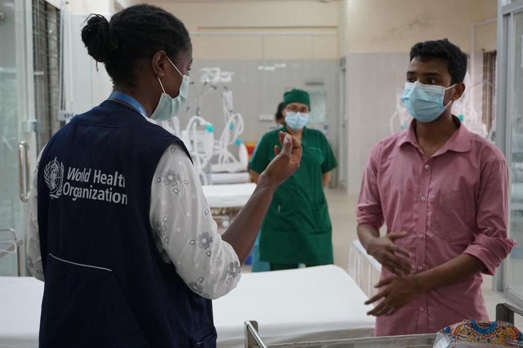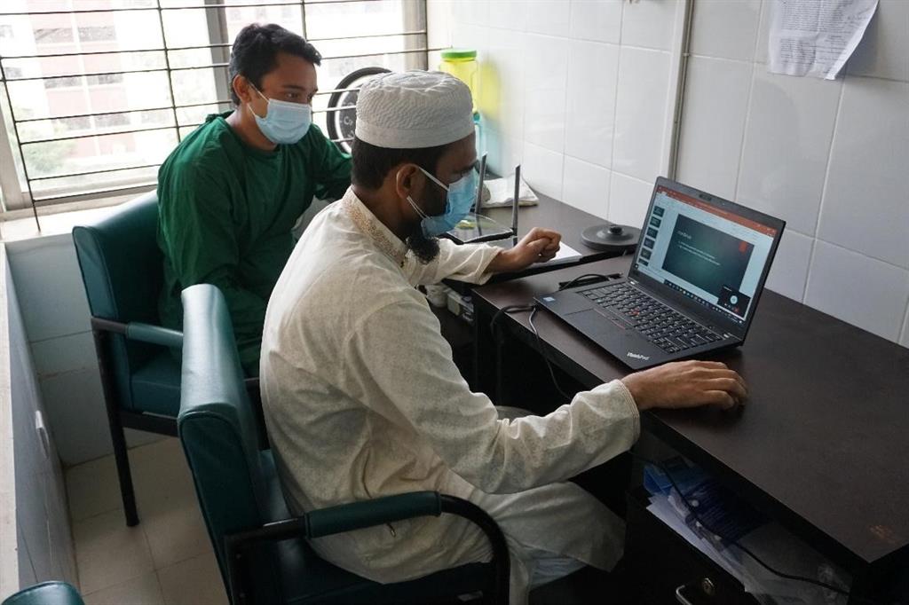 WHO is fostering peer to peer support and knowledge exchange on the full spectrum of the COVID-19 illness, from screening to rehabilitation, to optimize clinical health care in Cox’s Bazar. WHO Bangladesh/Tatiana Almeida