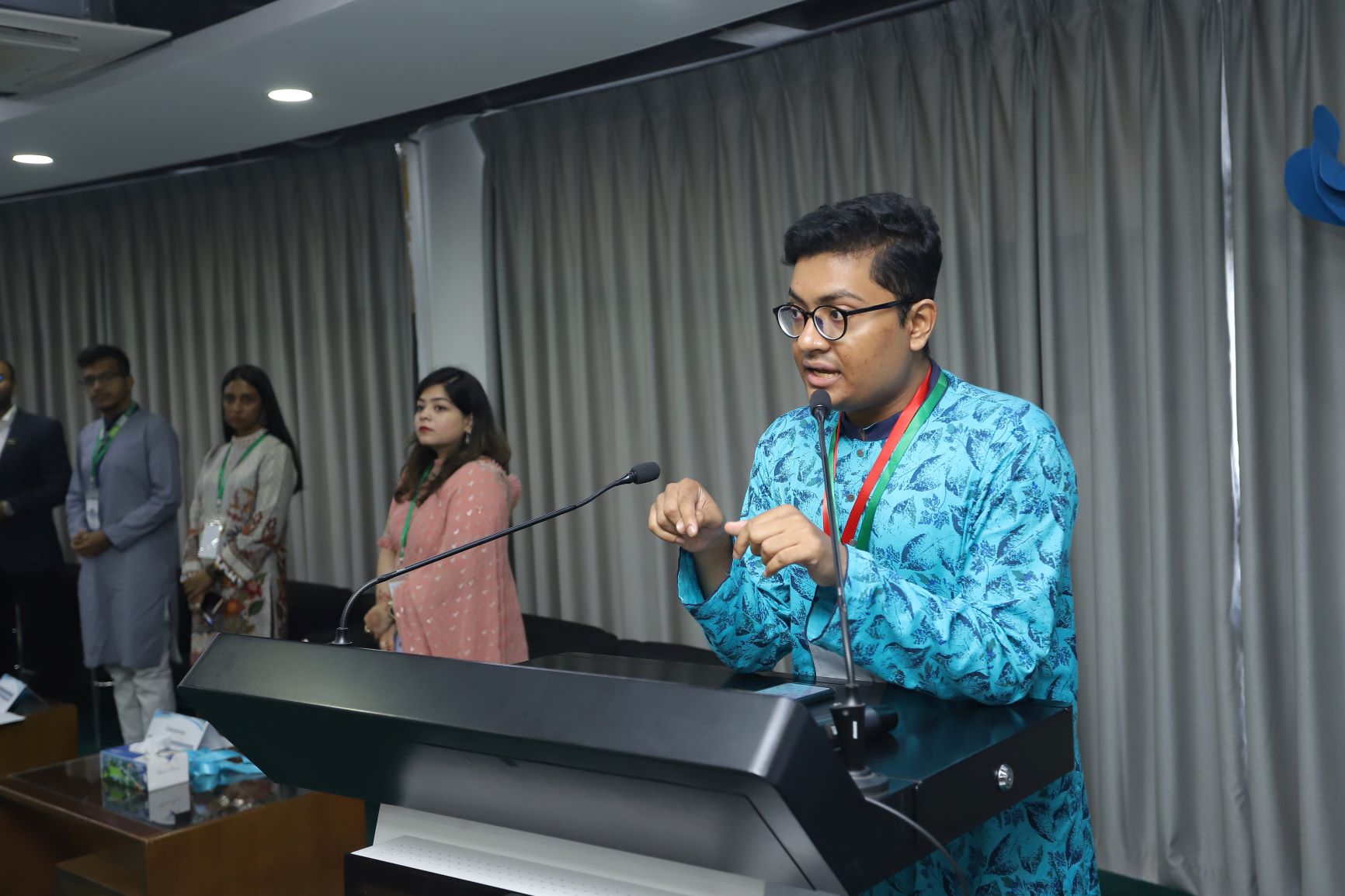 The opening plenary was led by plenary President Dr. M. Omar Khaium, Faculty of Allied Health Science (DIU), and plenary Vice President Nadia Nasreen Nadi, Vice President for External Affairs of Bangladesh Medical Students' Society (BMSS). The dais members of 5 specialized committees were called up on stage to discuss their respective agendas and expectations from delegates.