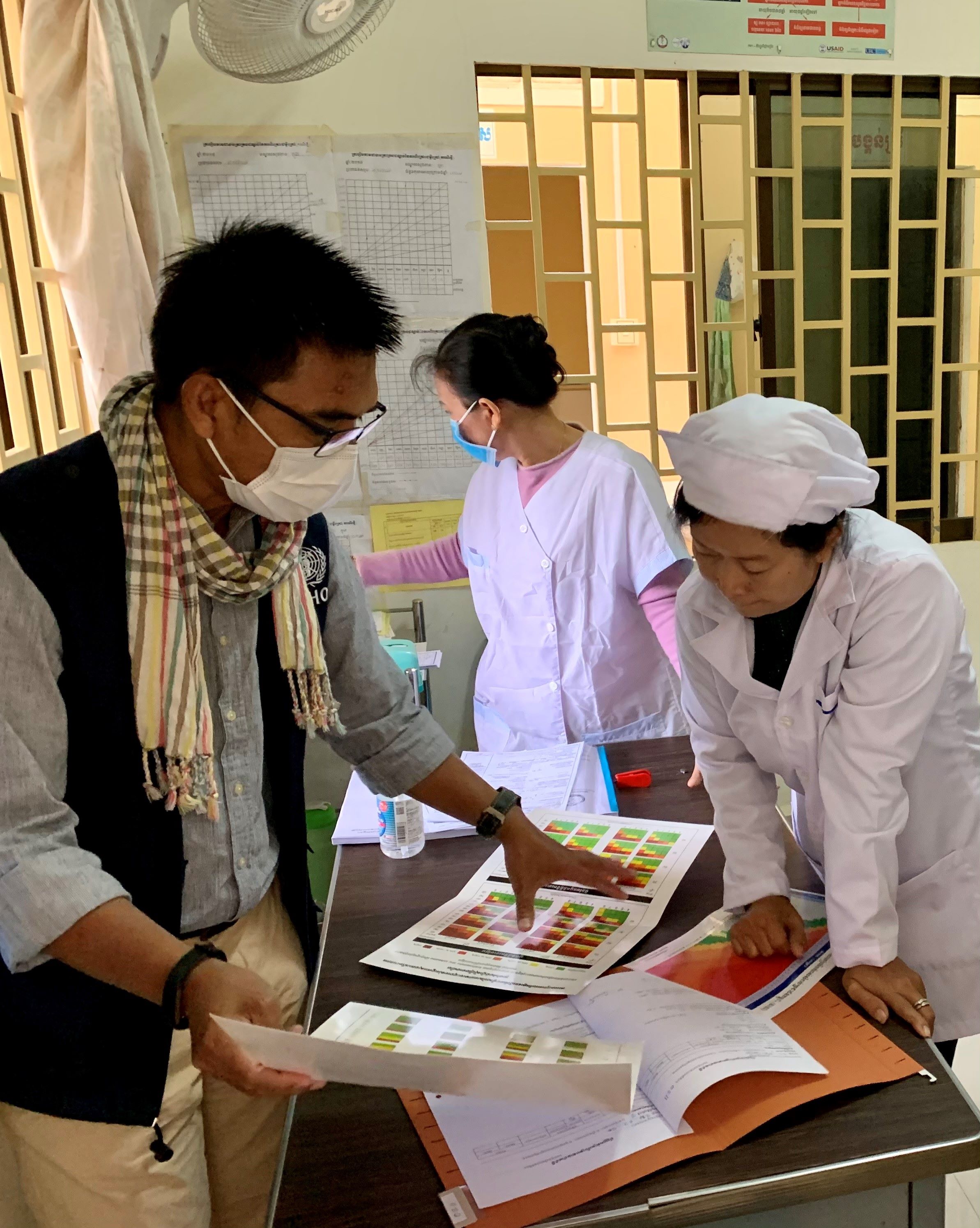 at WHO provided on-job training and explained to nurses at health centers on cardiovascular risk assessment and management, 12 November 2020, Battambang province.