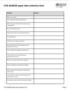 CVD ASSESS was initially developed to measure the impact of implementing essential cardiovascular disease interventions in primary health care. It was designed for use in settings with a range of types of medical health record infrastructure (from paper-based records to electronic health records).