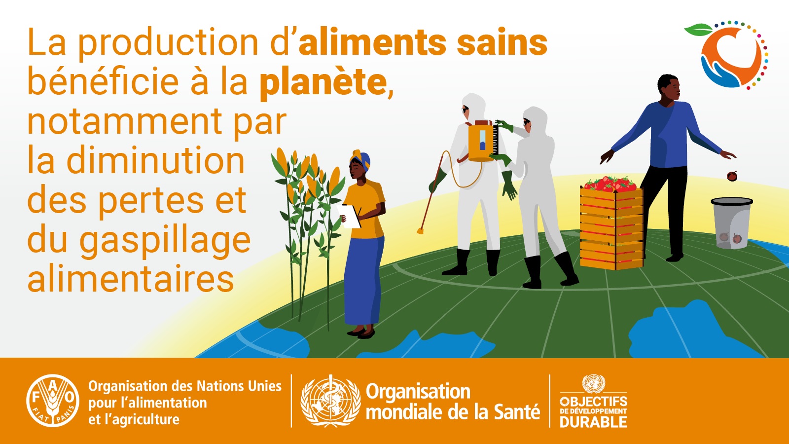 Sous le thème « Des aliments sains pour un avenir sain », la campagne de cette année vise à souligner les effets bénéfiques immédiats et à long terme de la production et de la consommation d’aliments sûrs pour la population, la planète et l’économie. Reconnaître les liens systémiques qui existent entre la santé des êtres humains, des animaux, des plantes, de l’environnement et de l’économie nous aidera à faire face aux besoins de demain.