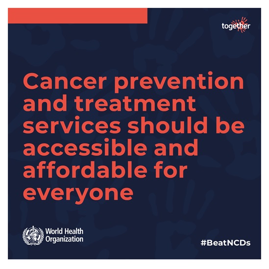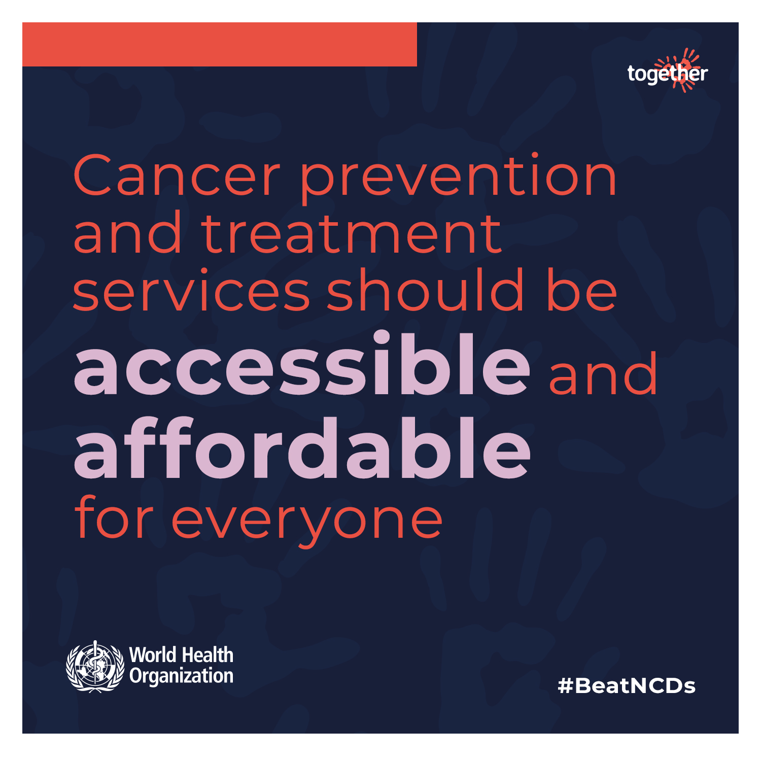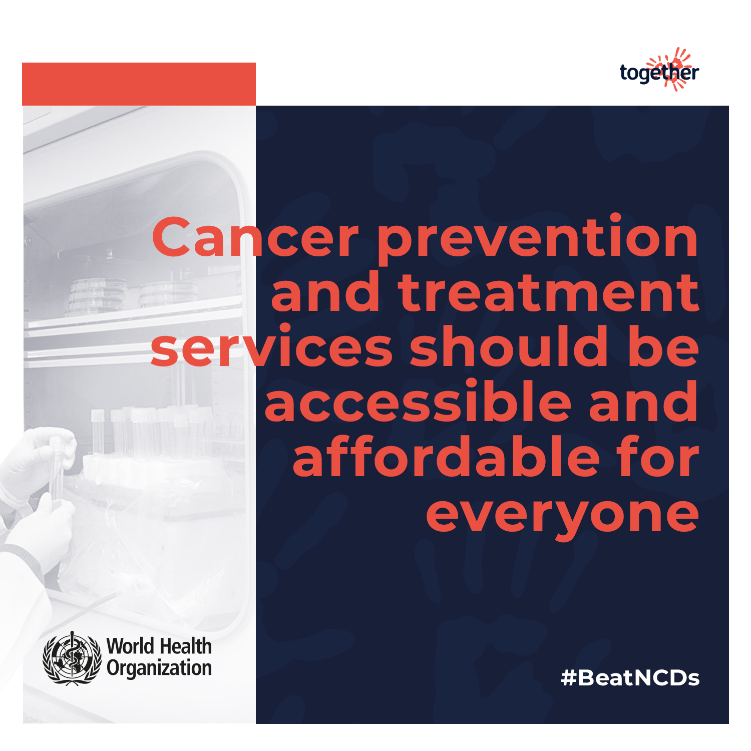 The cancer burden continues to grow globally, exerting tremendous physical, emotional and financial strain on individuals, families, communities and health systems. Many health systems in low- and middle-income countries are least prepared to manage this burden, and large numbers of cancer patients globally do not have access to timely quality diagnosis and treatment. In countries where health systems are strong, survival rates of many types of cancers are improving thanks to accessible early detection, quality treatment and survivorship care.