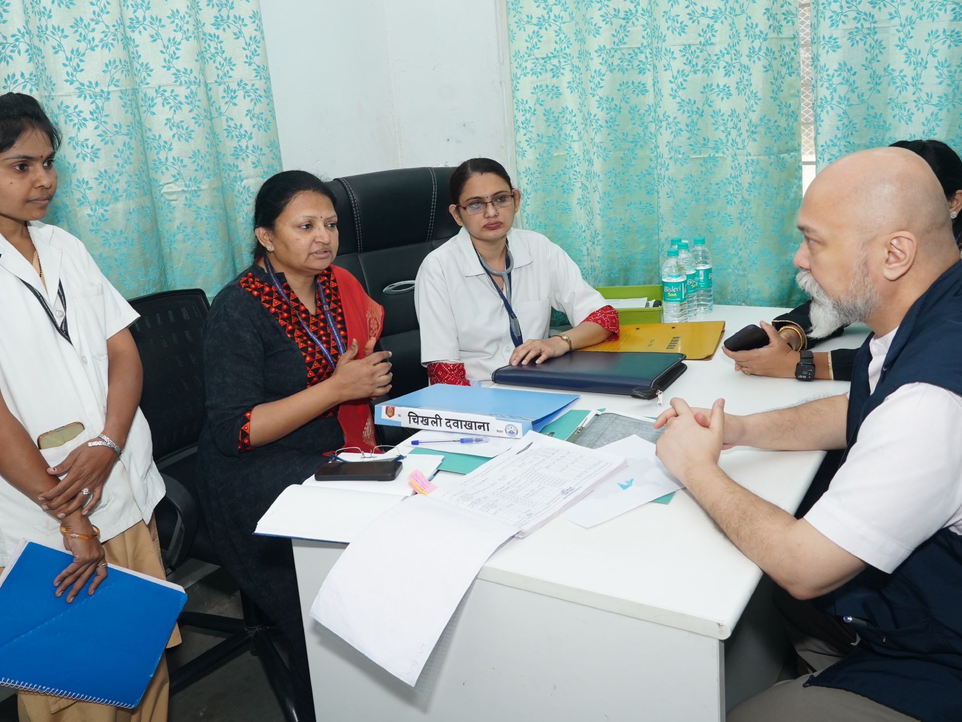 Tuberculosis screening is a part of routine antenatal care at Bhakatiduar Ayushman Arogya Mandir (AAM), Community Health Officer Mr Deepjyoti Baruah told WHO Representative to India Dr Roderico H. Ofrin, during his field visit to Assam. WHO teams are supporting Bhakatiduar AAM in strengthening health systems for meeting the national quality assurance standards. (Photo: @ WHO India / Sanchita Sharma)