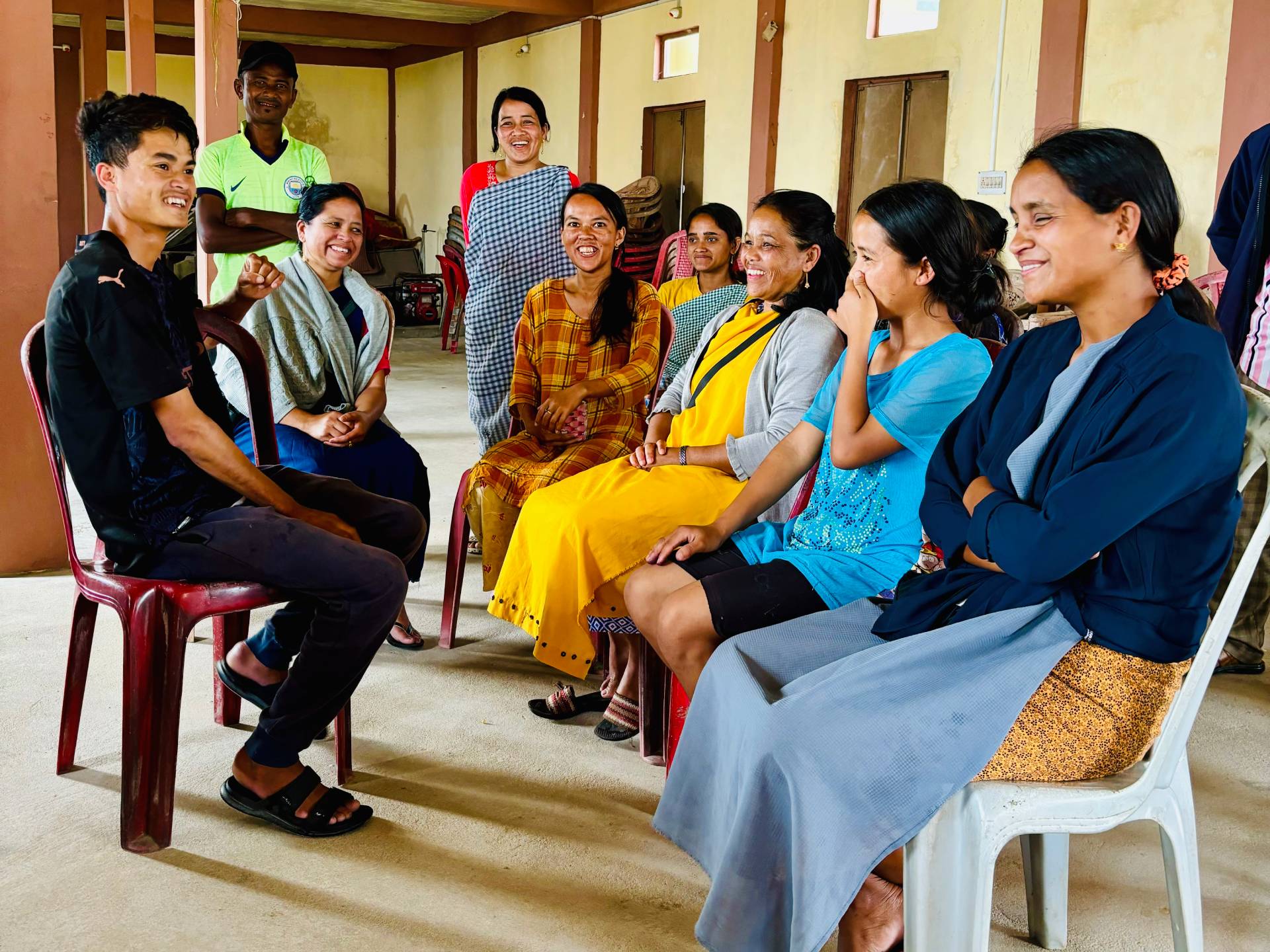 Government monitors discussing the concerns and needs of mothers of babies and young children as part of immunization surveys being conducted under the Behavioural and Social Drivers initiative supported by WHO field team in the North Garo Hills district in Meghalaya (Photo: © WHO India / Abel Marak)