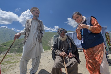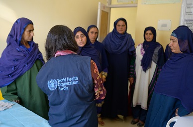 A WHO health systems officer observes health services, including health check-ups, being provided by the health department’s mobile medical aid team at a temporary settlement of the Bakarwal nomadic tribe in Peer Ki Gali, Rajouri district, in the Jammu division of the Union Territory (UT) of Jammu and Kashmir. (Photo: Rajiv Solanki / © WHO India)