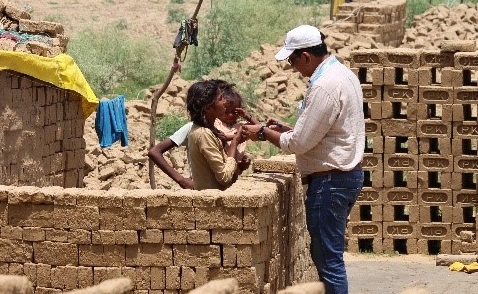 WHO field teams assisted Bihar state health department in delivering bivalent oral polio (bOPV) vaccines to children of migrant labourers working at brink kilns during National Immunization Day on 24 November. Oral polio vaccines are given to all children under 5 years during one National Immunization Day and two SNIDs organized every year to ensure India remains polio-free. (Photo: © WHO India / Binod Kumar)