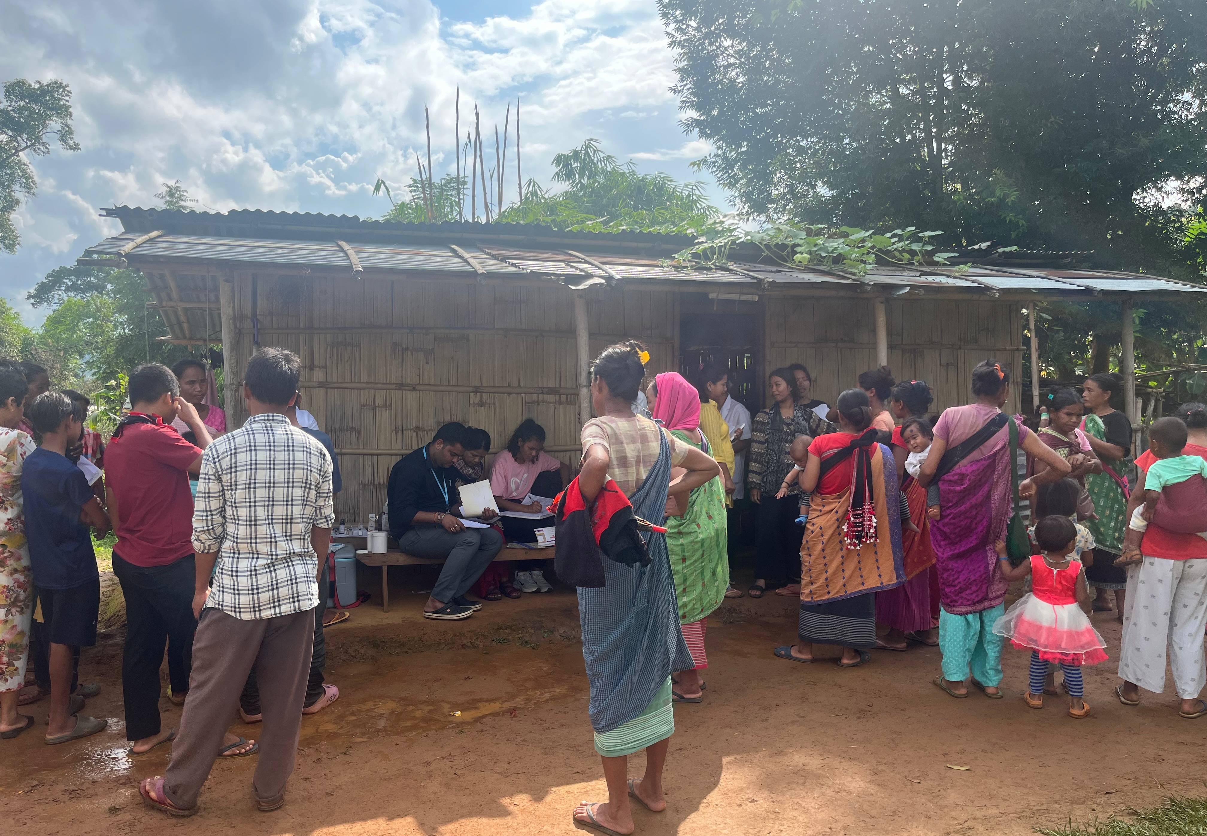 During house-to-house monitoring in Lalung Tea Garden in Borkhet village, Bordumsa block, a team comprising district health staff and WHO rapid response personnel identified three “drop-out” children who hadn’t completed their scheduled vaccinations and one “zero-dose” unvaccinated child. A special vaccination session was held the next day to ensure they received their due vaccines. (Photo: © WHO India)