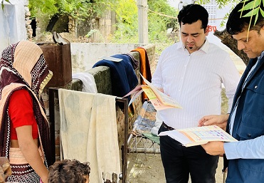 WHO National Public Health Support Network (NPSN) officers supported house-to-house monitoring of the vaccination status of children during Intensified Mission Indradhanush (IMI 5.0) in Bairwa Basti, Jhilai, Block Niwai in Tonk district of Rajasthan. (Photo: Khushal Goyar / © WHO India)