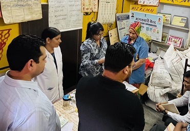 WHO National Public Health Support Network (NPSN) officers, government officials and partners conducting session site monitoring at Anganwadi Centre Balai Basti, Tonk Phatak, during Intensified Mission Indradhanush (IMI 5.0) in Rajasthan. (Photo: Khushal Goyar / © WHO India)