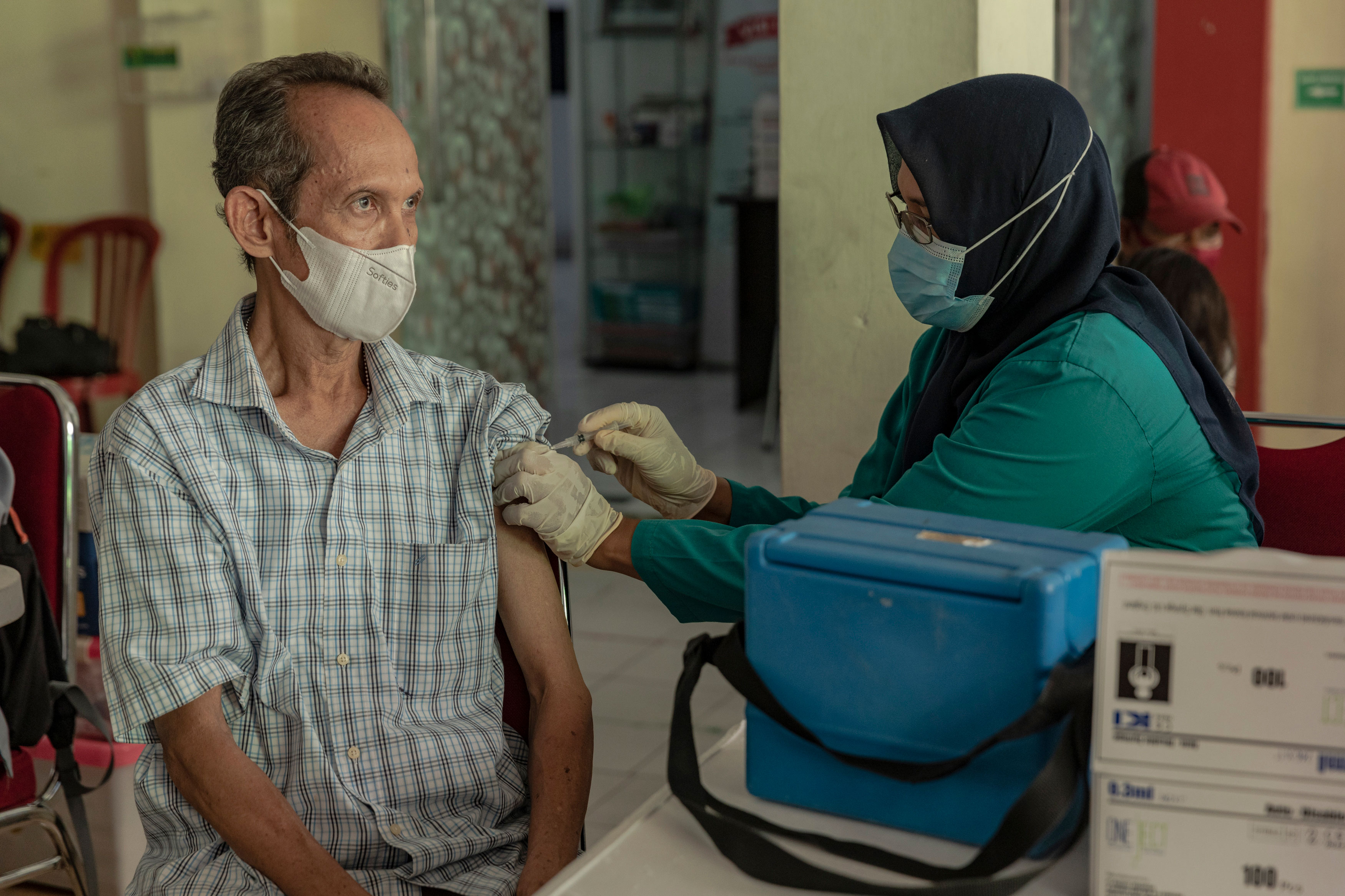 “Vaksin juga saya perlukan sebagai syarat untuk berjualan di pasar,” tutur Zusana. Zusana dan keluarganya menanam buah-buahan seperti pisang, rambutan, durian, dan makanan pokok seperti sagu. Setiap pagi, dia menjualnya di pasar terdekat. Untuk menekan penularan COVID-19, pemerintah mewajibkan semua penjual untuk mendapatkan vaksinasi COVID-19.