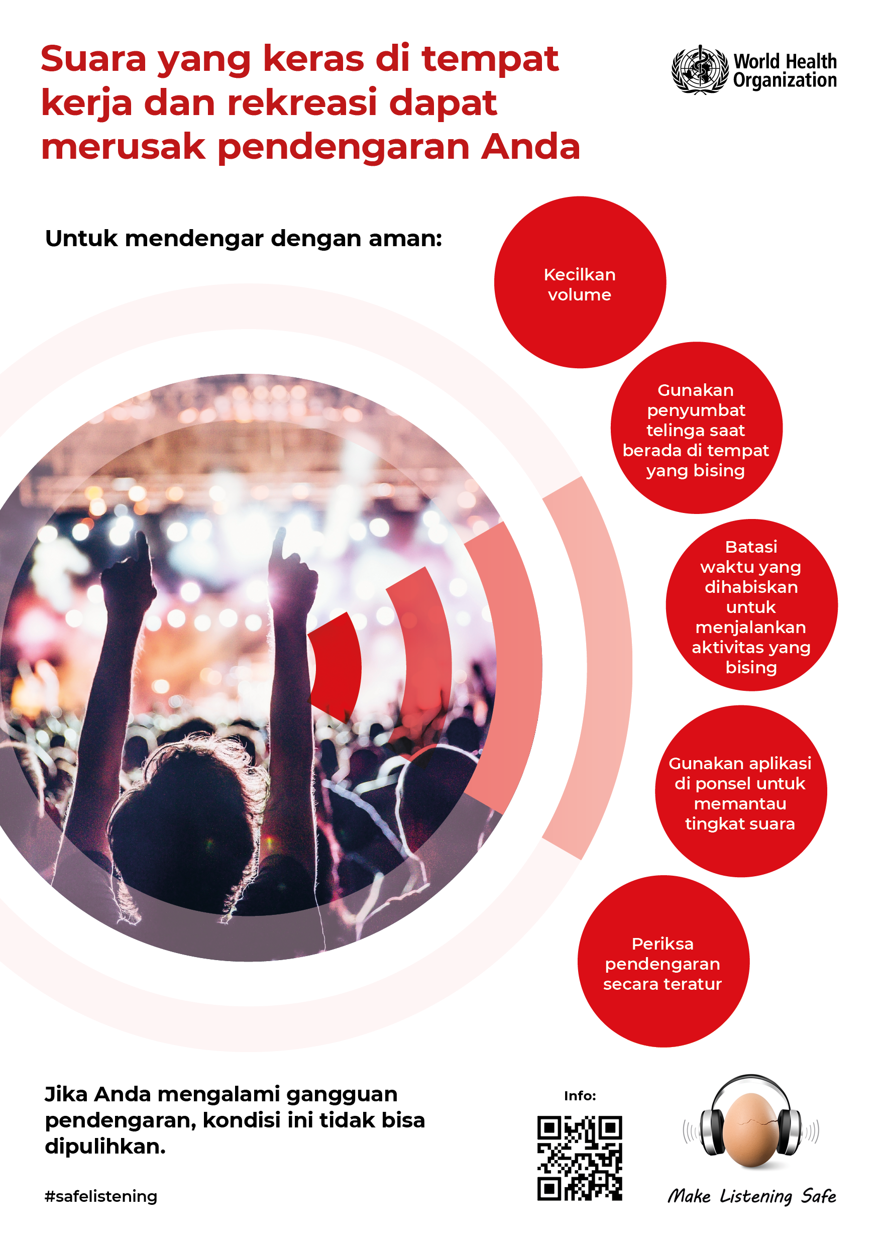 Pada Hari Pendengaran Sedunia (World Hearing Day) 2022, WHO akan fokus pada pentingnya mendengarkan dengan aman sebagai cara untuk menjaga pendengaran yang baik seumur hidup. WHO meluncurkan World report on hearing pada tahun 2021 yang menyoroti peningkatan jumlah orang yang hidup dengan dan berisiko mengalami gangguan pendengaran. Laporan ini menyoroti pengendalian kebisingan sebagai salah satu intervensi H.E.A.R.I.N.G. yang utama dan menekankan pentingnya mengurangi eksposur suara yang keras.