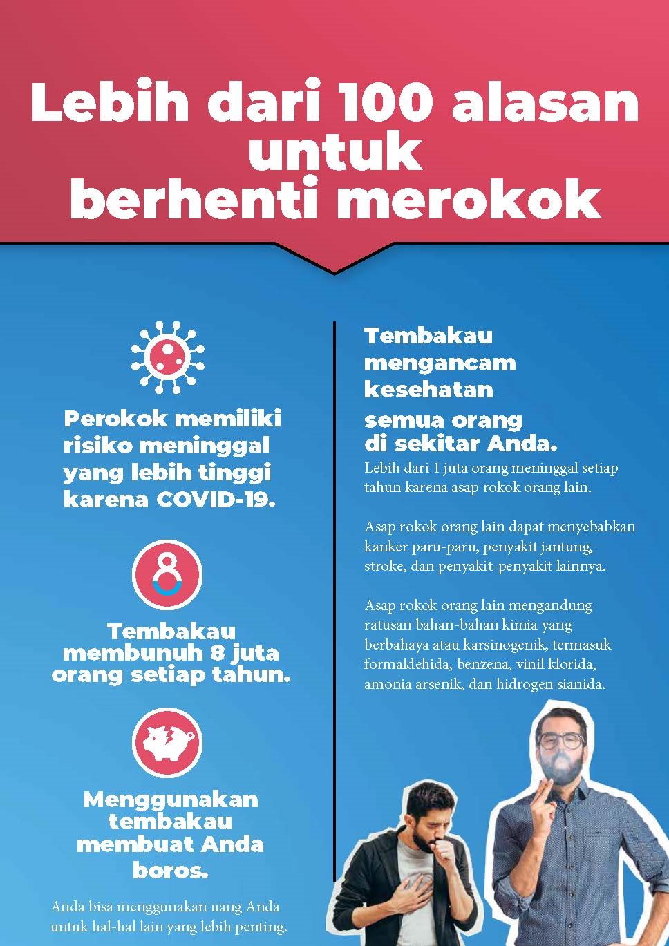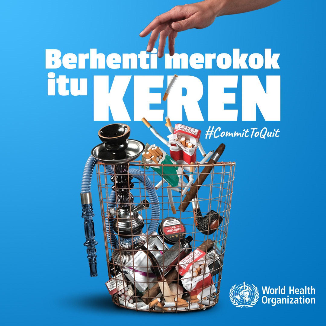 Pandemi COVID-19 membuat jutaan pengguna tembakau mengatakan mereka ingin berhenti. Ayo berkomitmen untuk berhenti menggunakan tembakau jenis apa pun hari ini dan klik button di bawah ini untuk mengisi pledge WHO.