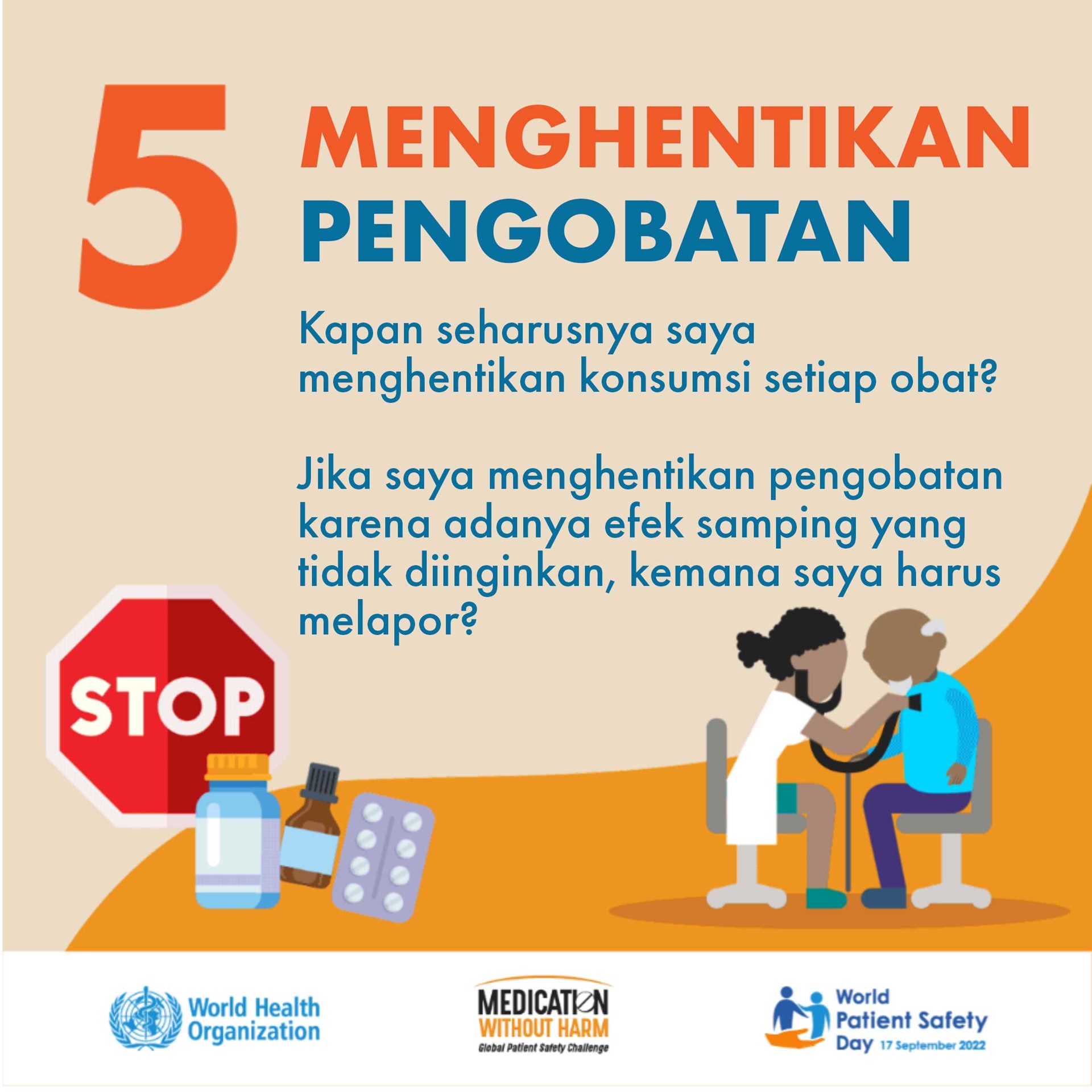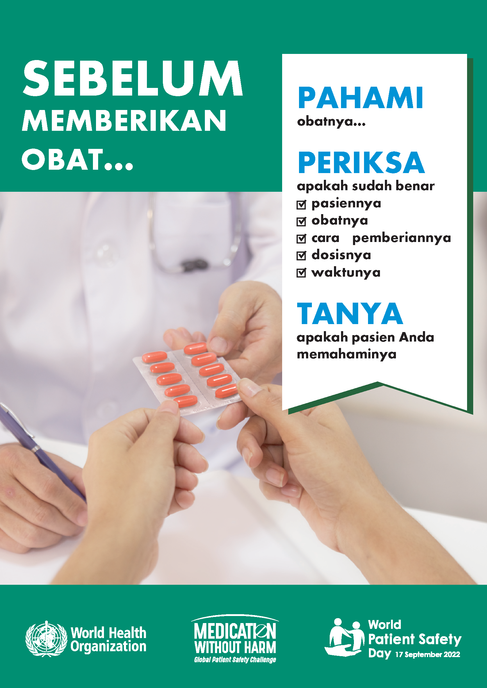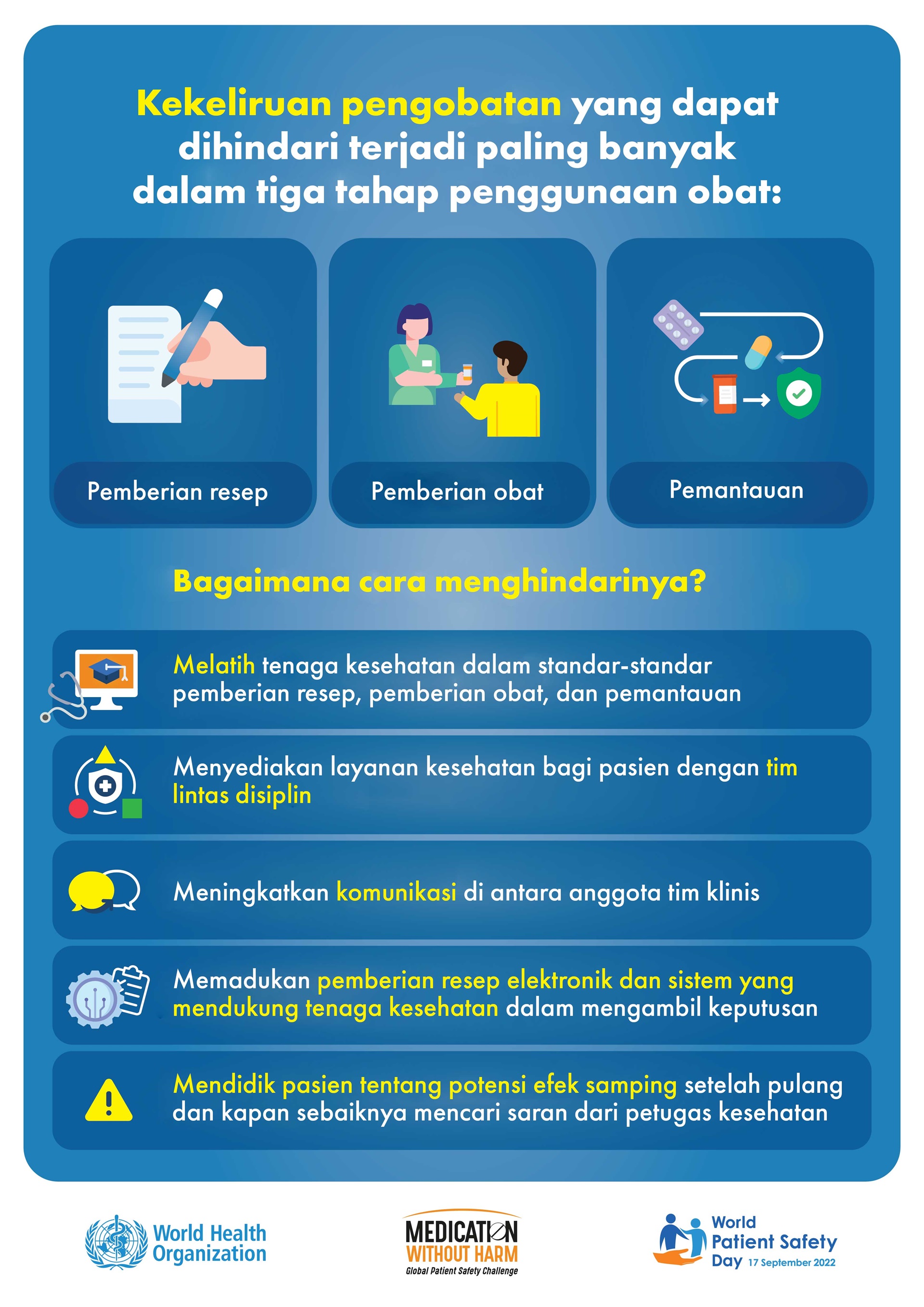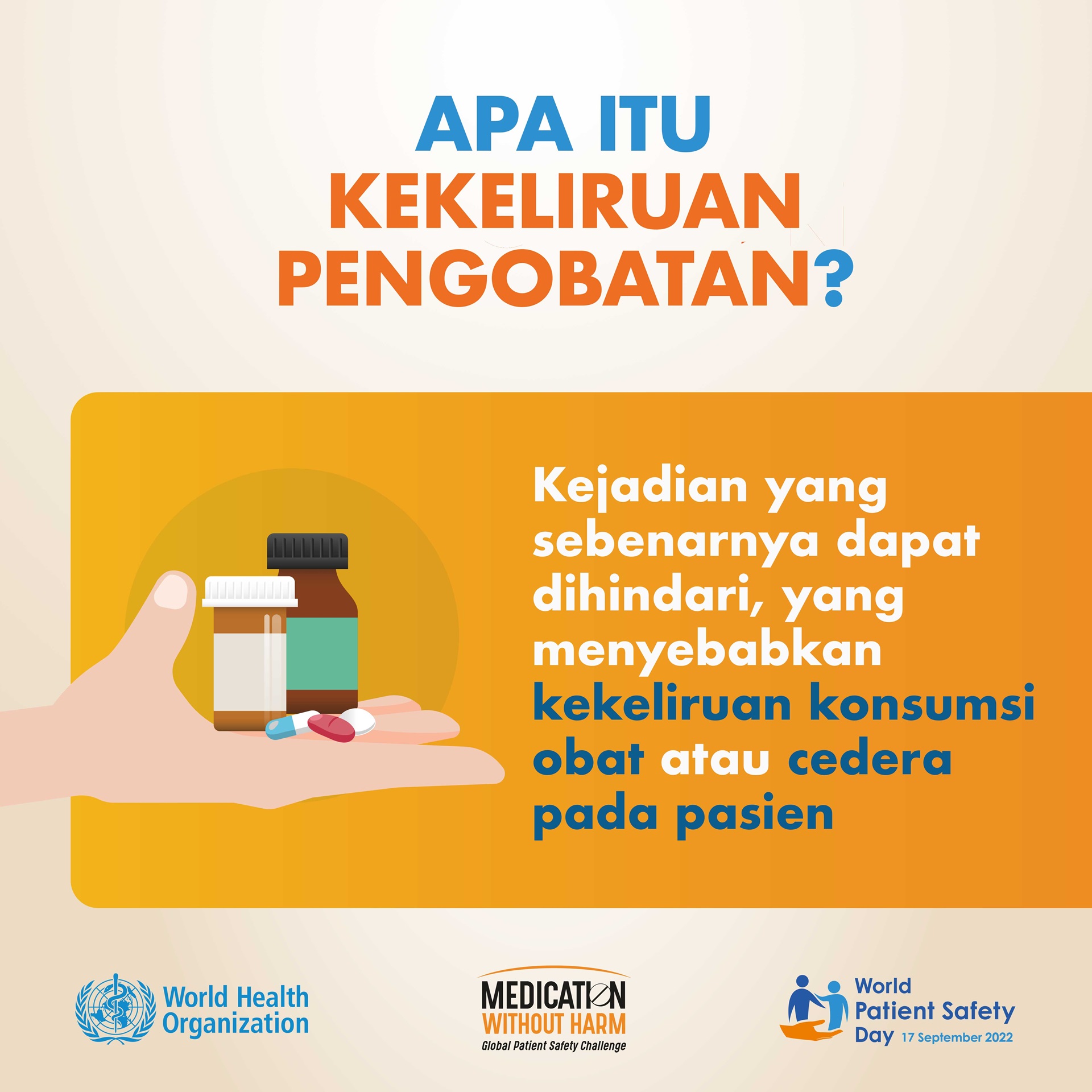 Melihat beban substansial ini beserta kompleksitas pencegahan dan pengurangan cedera akibat pengobatan, "Keamanan Obat" dipilih sebagai tema Hari Keselamatan Pasien Sedunia 2022.