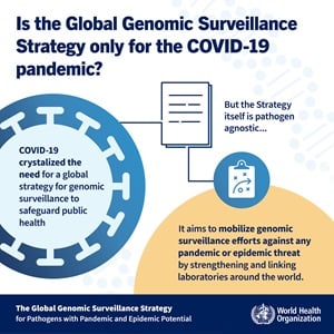 Many people are familiar with the field of genomics as a tool for ancestry mapping to trace relatives or to identify genetic risk factors for diseases. However, genomics has also been widely applied to tracking infectious diseases by sequencing the genomes of bacteria, parasites and viruses. Genomic surveillance is the process of constantly monitoring pathogens and analyzing their genetic similarities and differences. Recognizing the need for global collaboration in strengthening genomic surveillance, WHO has coordinated the development of the 10-year Global genomic surveillance strategy for pathogens with pandemic and epidemic potential 2022 - 2032. The initiative is powered by a vision to unite, inform and strengthen genomic surveillance efforts at country, regional and global levels.