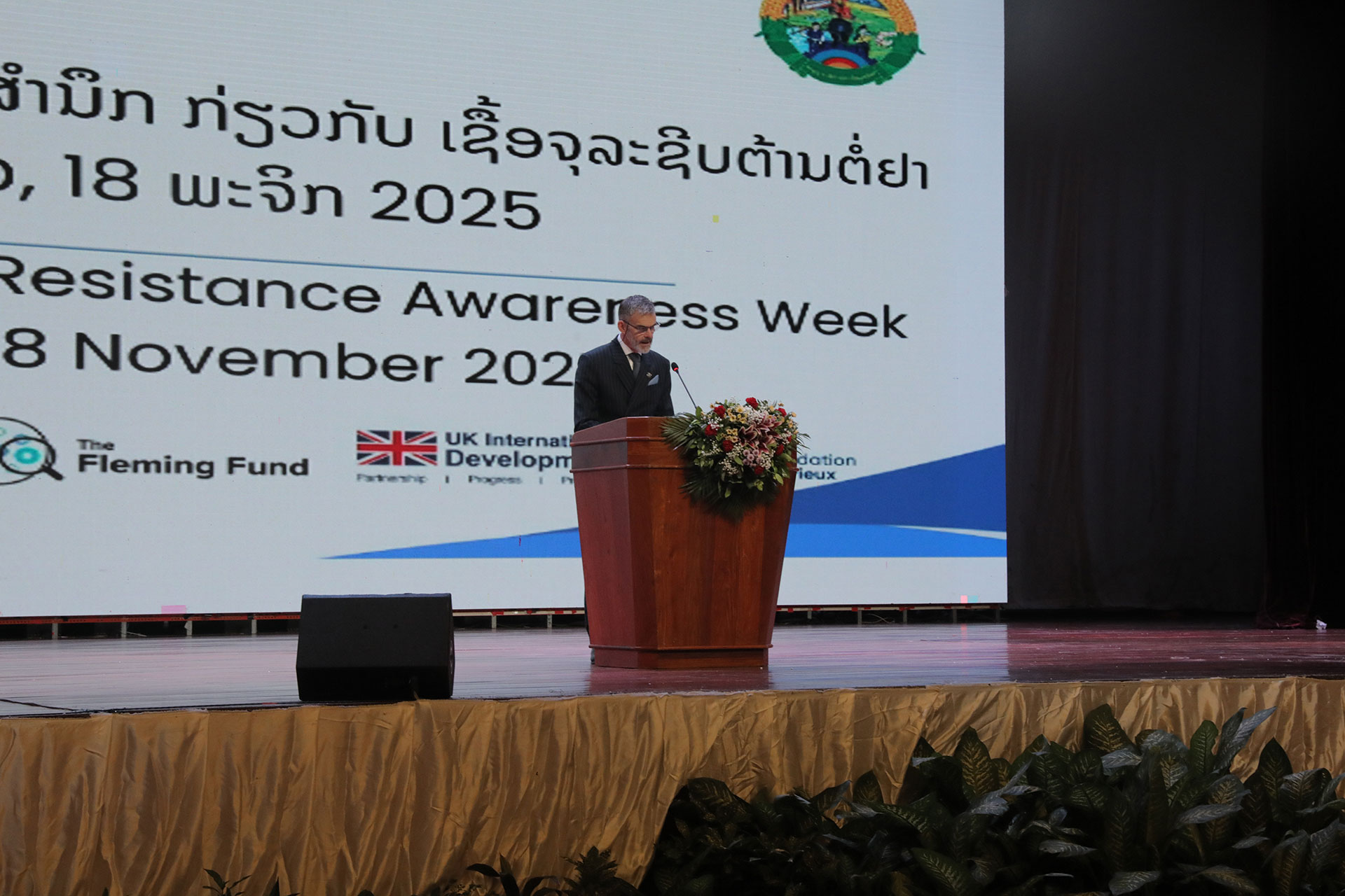 ນະຄອນຫຼວງວຽງຈັນ, ສປປ ລາວ, ວັນທີ 18 ພະຈິກ 2025 – ລັດຖະບານ ແຫ່ງ ສປປ ລາວ, ຮ່ວມກັບອົງການອາຫານ ແລະ ການກະເສດ ແຫ່ງ ສະຫະປະຊາຊາດ (FAO), ອົງການອະນາໄມໂລກ (WHO), ມູນນິທິເມຣີເອີ, ບັນດາຄູ່ຮ່ວມງານໃນລະດັບທ້ອງຖິ່ນ ແລະ ສາກົນ, ສະຖາບັນການສືກສາ, ໂຮງໝໍ, ຜູ້ໃຫ້ບໍລິການດ້ານສຸຂະພາບ, ແລະ ພາກເອກະຊົນ, ໄດ້ເປີດກອງປະຊຸມຢ່າງເປັນທາງການ ຢູ່ ໂຮງແຮມແລນມາກ ເພື່ອສ້າງຄວາມຮັບຮູ້ຕໍ່ກັບໄພຂົ່ມຂູ່ດ້ານສາທາລະນະສຸກທີ່ກໍາລັງເພີ່ມຂຶ້ນໃນທົ່ວໂລກ ເຊິ່ງເອີ້ນກັນວ່າ ເຊື້ອຈຸລະຊີບຕ້ານຕໍ່ຢາ (AMR), ພ້ອມທັງເປັນການສ້າງຄວາມຮັບຮູ້ໃຫ້ແກ່ປະຊາຊົນ ໂດຍຜ່ານງານສັບປະດາສາກົນປູກຈິດສໍານຶກກ່ຽວກັບເຊື້ອຈຸລະຊີບຕ້ານຕໍ່ຢາ ທີ່ຈັດຂຶ້ນເປັນປະຈໍາທຸກໆປີ, ເຊິ່ງເປັນຄໍາໝັ້ນສັນຍາໃນການຮ່ວມມືກັນຂອງຫຼາຍພາກສ່ວນ.