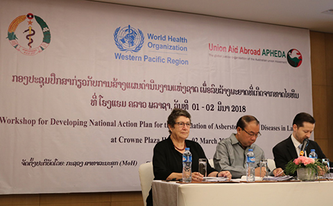 A multi-sectoral workshop was organized by the Ministry of Health, supported by the World Health Organization and Union Aid Abroad -APHEDA to develop the National Action Plan to ban the use of chrysotile asbestos to eliminate asbestos-related diseases in the country. Participants included representatives from nine ministries, Lao Federation of Trade Unions and academia.