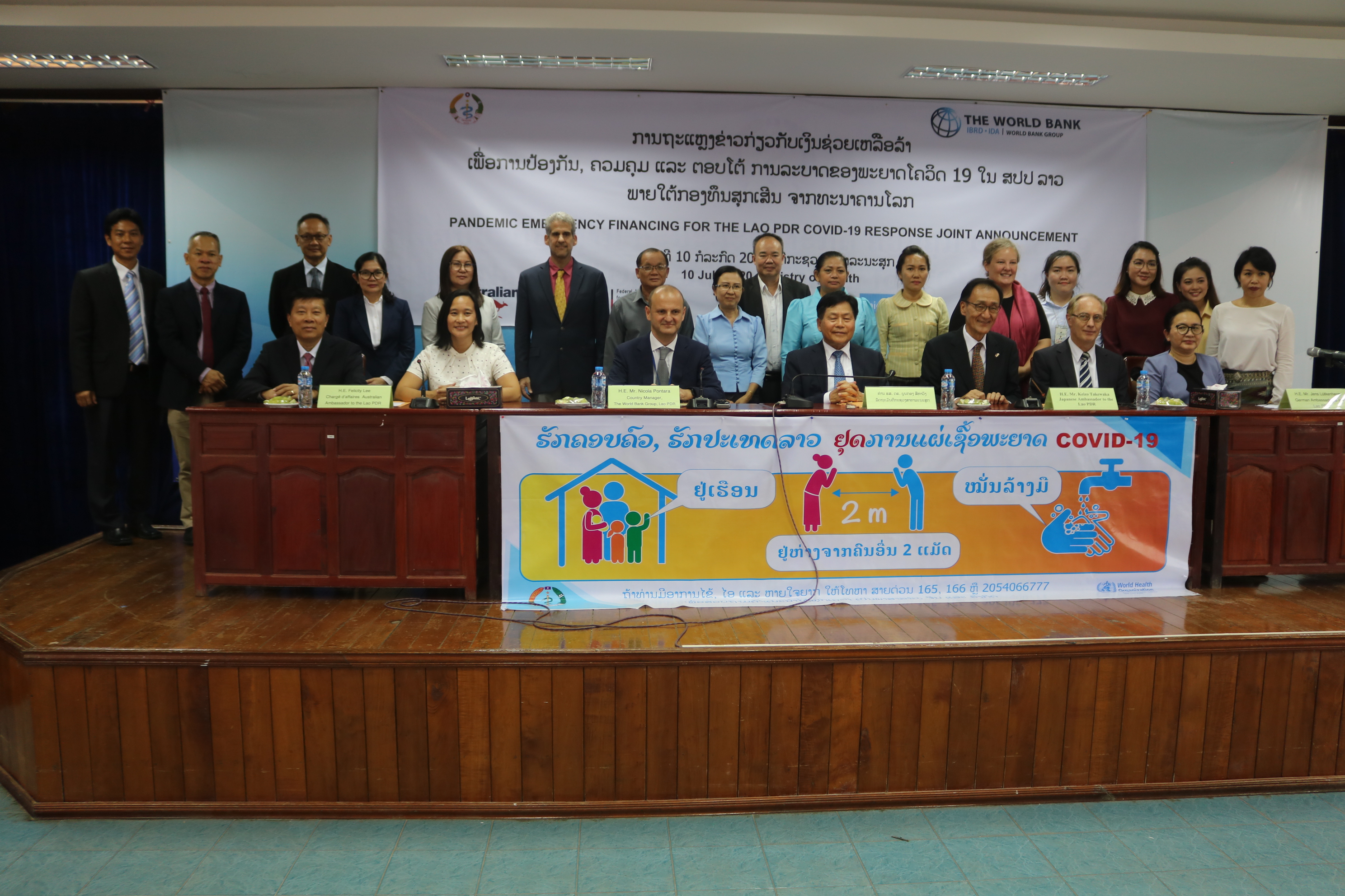 A grant of USD 200,000 provided under the World Bank’s Pandemic Emergency Financing Facility will fund a programme of technical support to 50 district hospitals across Lao PDR to help them upgrade hygiene and infection control. A further USD 800,000 – overseen by UNICEF – will fund procurement and delivery of essential vaccines. Representatives from WHO and UNICEF joined Lao PDR’s Minister of Health Assoc Prof Dr Bounkong Syhavong and Ambassadors from Australia, Germany and Japan at the official announcement of the USD 1 million package today.