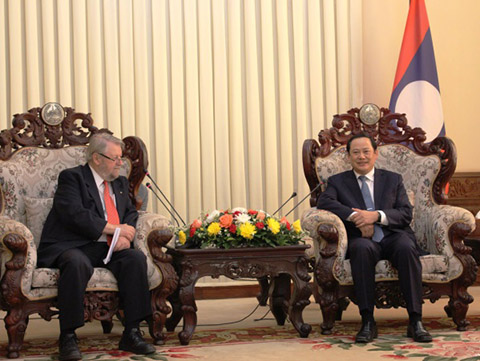 The Deputy Prime Minister, Mr Sonexay Siphandone met the international expert team led by Professor John Mackenzie and they were joined by the Deputy Minister of Health, Dr Phounthone Muongpak, WHO Director of Division of Health Security and Emergencies Dr Li Ailan and WHO Representative to Laos, Dr Juliet Fleischl.