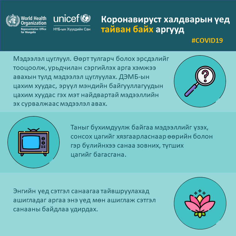 Бид өөрсдийнхөө биеийн болон сэтгэцийн эрүүл мэндээ хамгаалах чадвартай. COVID - 19-ын талаар баримтуудыг мэдэж авсанаар та өөрийгөө эрүүл, өөдрөг сэтгэл зүйтэй байлгаж чадна.