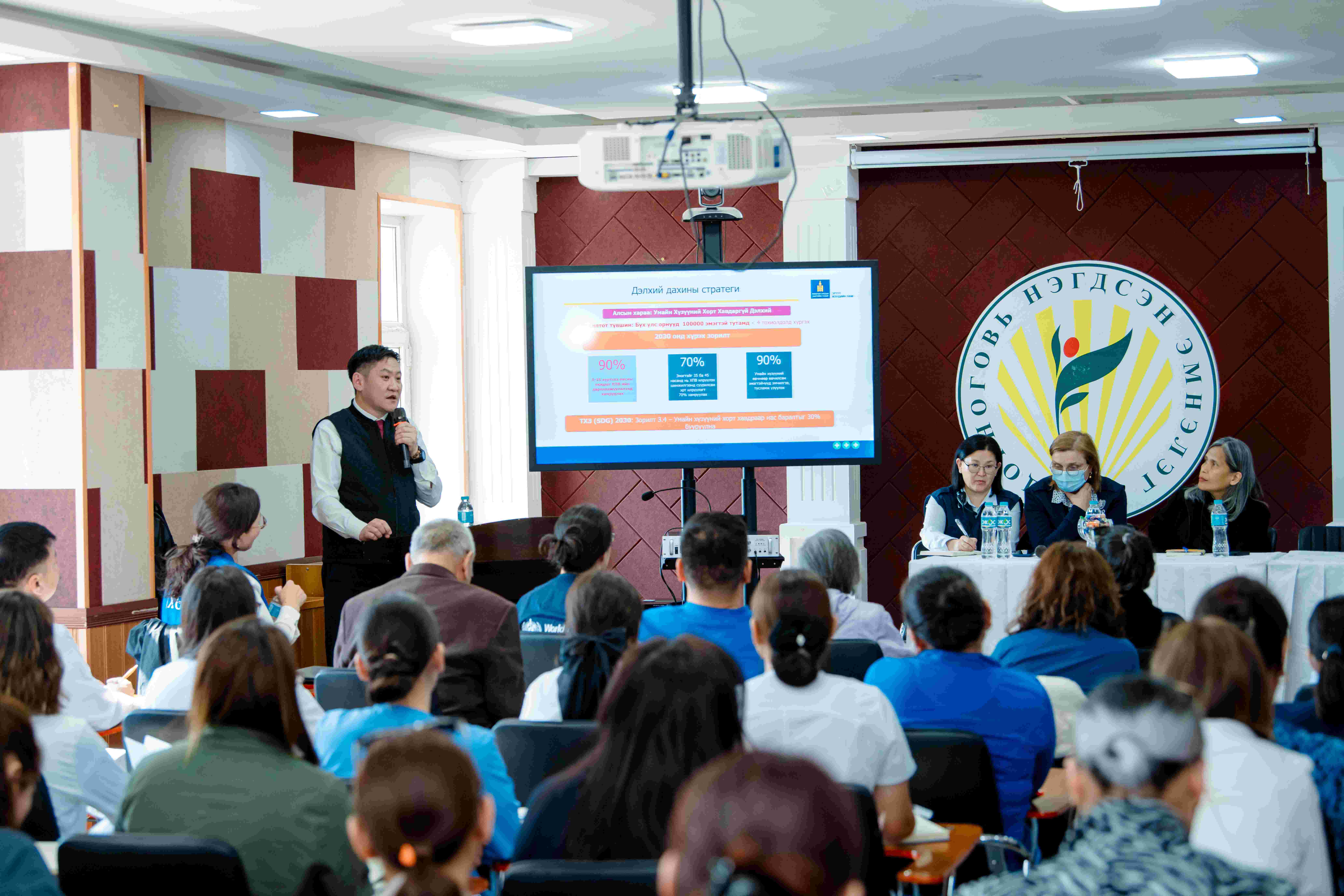 Хамтарсан баг ХПВ-ийн халдварын эсрэг дархлаажуулалтын хамралтыг нэмэгдүүлэх чиглэлээр эрүүл мэндийн ажилчдад сургалт зохион байгуулж байна. Зургийг: ДЭМБ