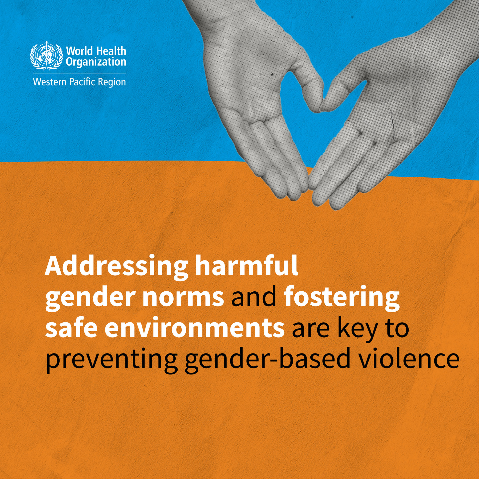 Addressing harmful gender norms and fostering safe environments are key to preventing gender-based violence. 25 November 2025 | graphics (social media tile) WHO Team WHO Western Pacific