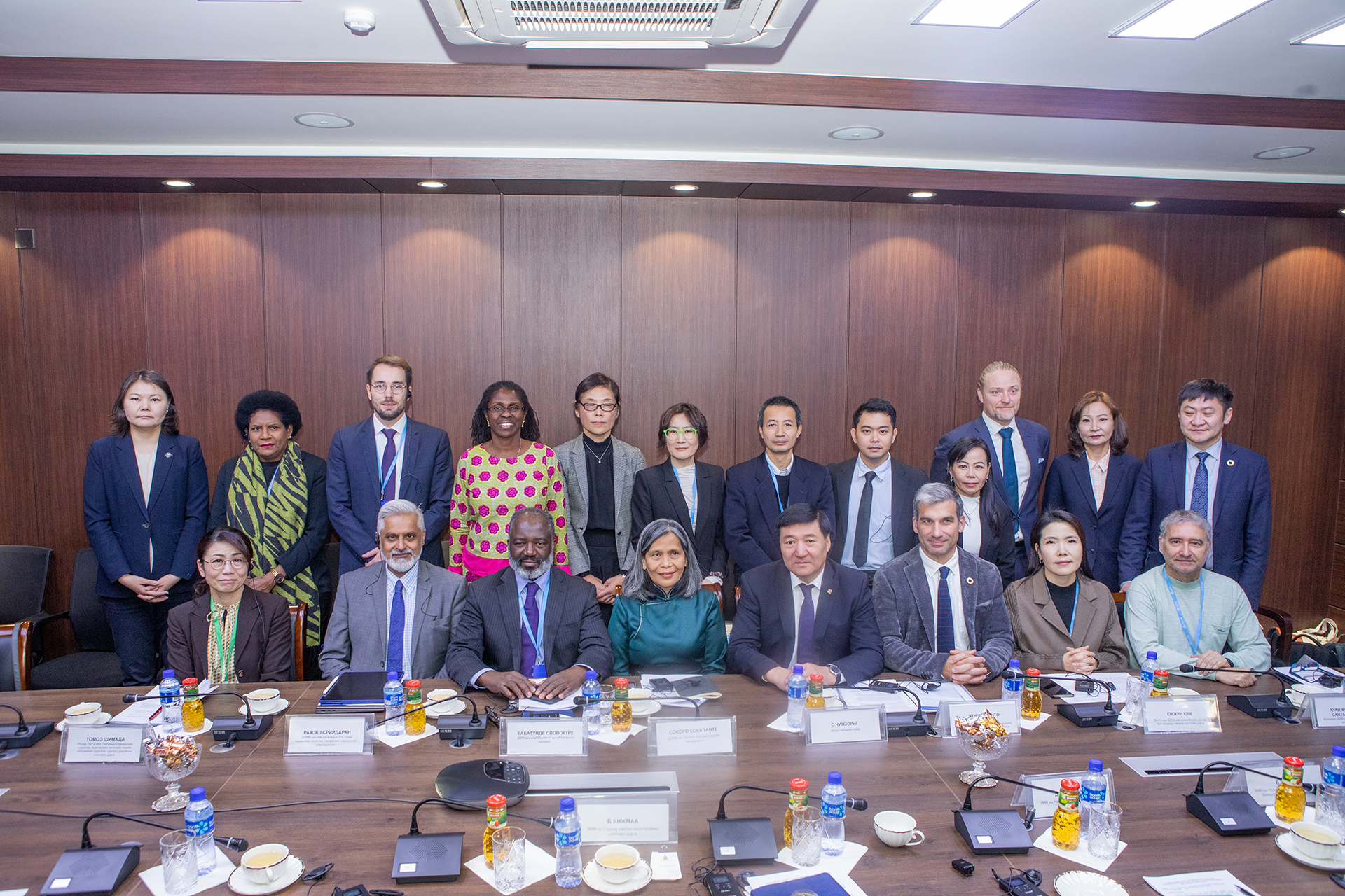 Joint External Evaluation team debriefing with representatives from the State Emergency Commission’s Office and Deputy Prime Minister’s Office, Mongolia, on 24 November 2023. Photo credit: WHO Mongolia