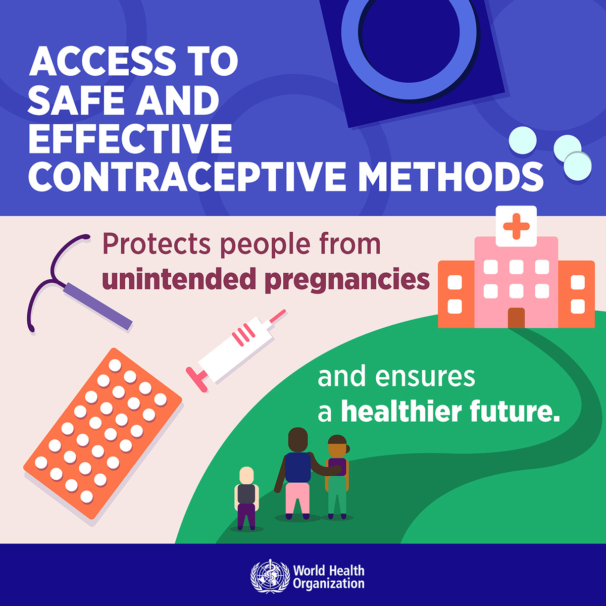 Access to safe and effective contraceptive methods protects people from unintended pregnancies and ensures a healthier future 8 July 2019 | graphics (infographic) WHO Team Sexual and Reproductive Health and Research (SRH)
