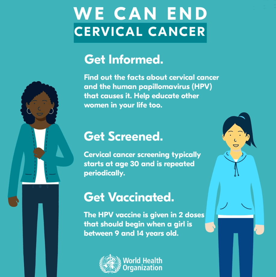 Get informed - get screened - get vaccinated 26 May 2021 | graphics (animated image) WHO Team Cervical cancer elimination initiative