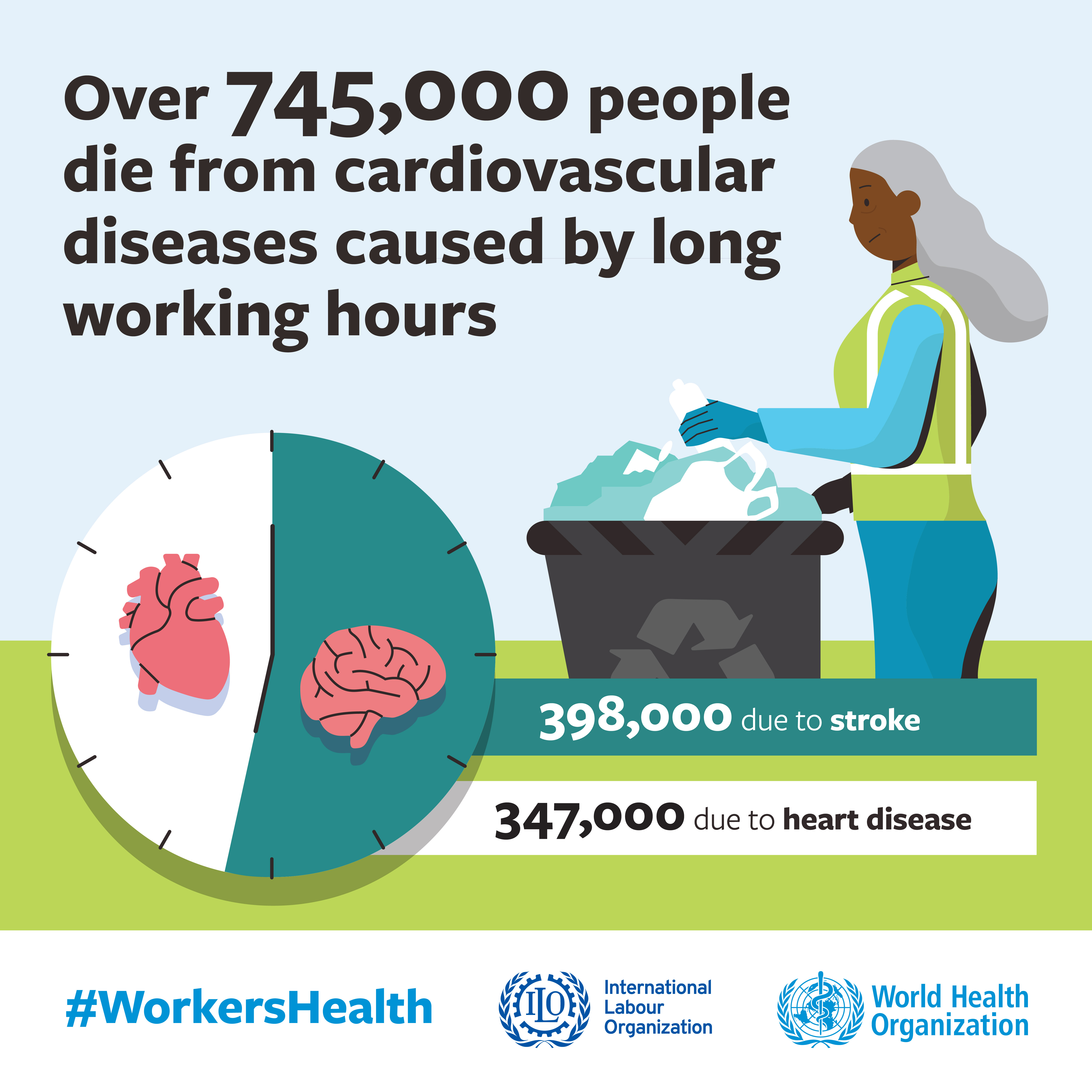 Over 745,000 people die from cardiovascular diseases caused by long working hours 10 May 2021 | graphics (infographic) WHO Team Environment, Climate Change and Health (ECH), WHO-ILO joint estimates