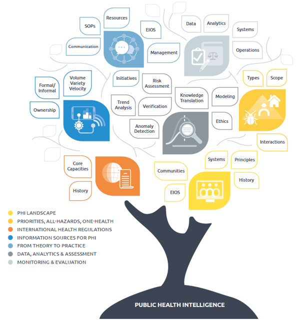 Building Public Health Intelligence Competencies: Infographic displaying some of the themes and topics of interest 21 November 2022 | graphics (infographic) WHO Team EIOS
