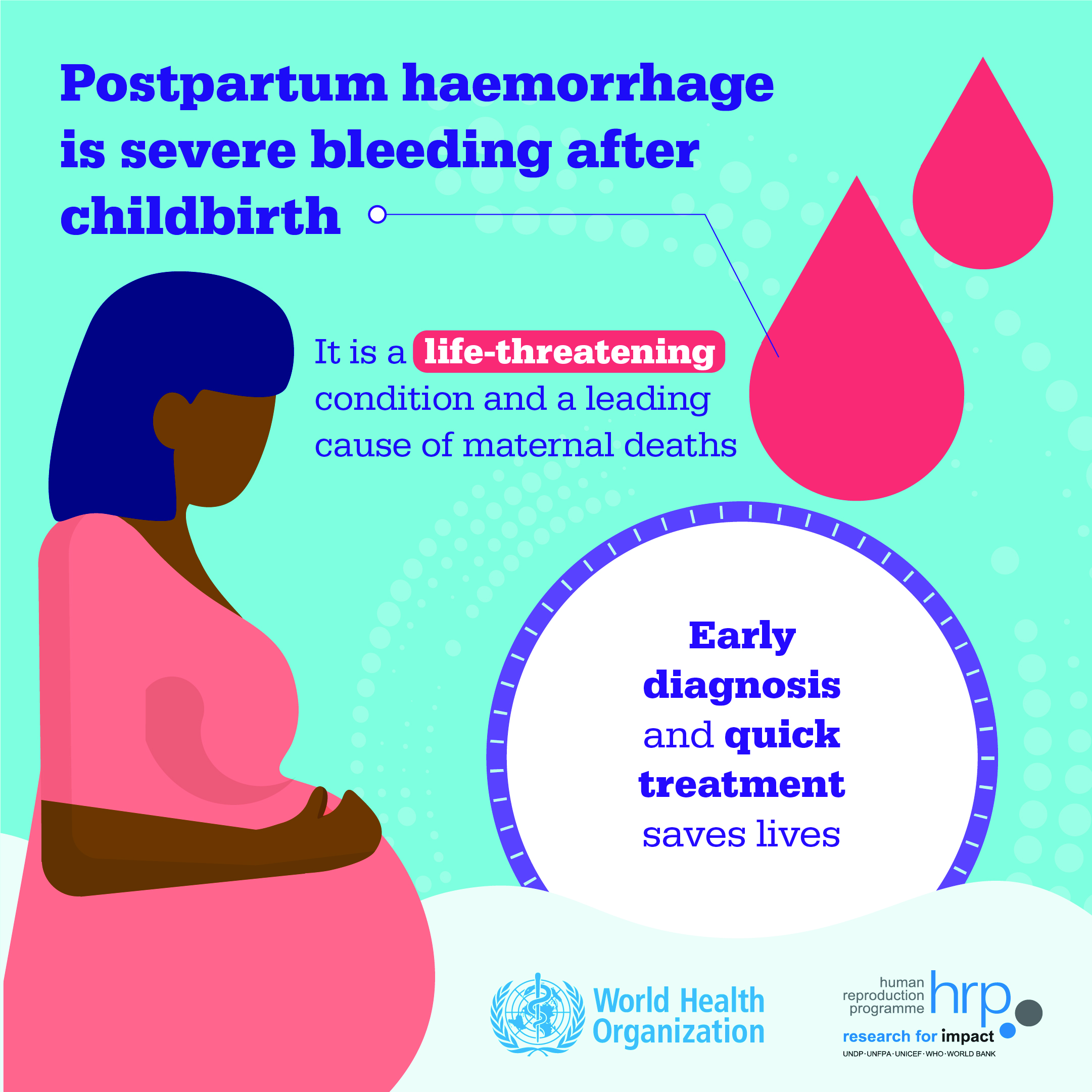 Postpartum haemorrhage is severe bleeding after childbirth. It is a life-threatening condition. 6 October 2025 | graphics (infographic) WHO Team Sexual and Reproductive Health and Research (SRH)