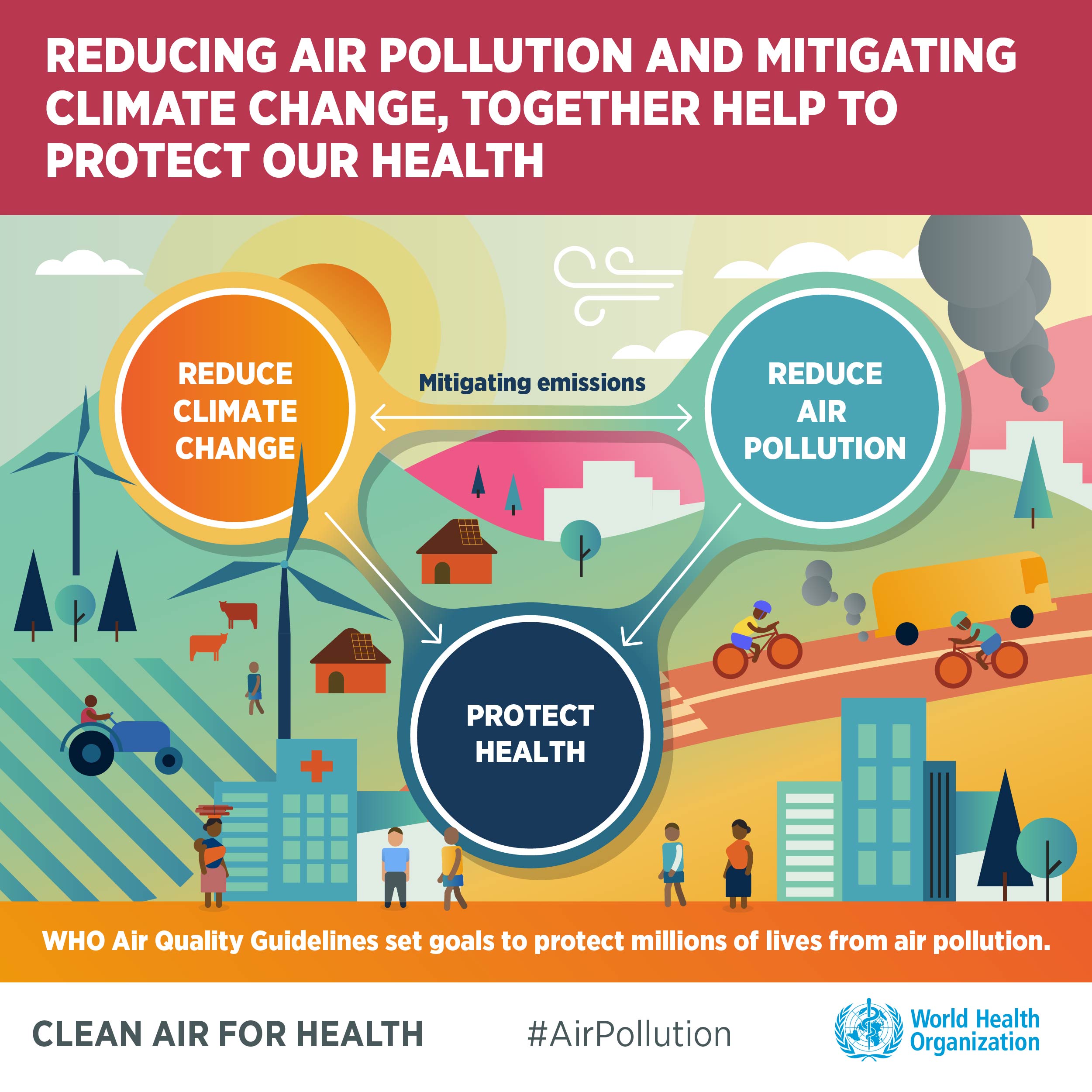 Reducing Air Pollution and Mitigating Climate Change, Together to Protect our Health 17 November 2021 | graphics (infographic) WHO Team Air Quality, Energy and Health (AQE), Environment, Climate Change and Health (ECH)