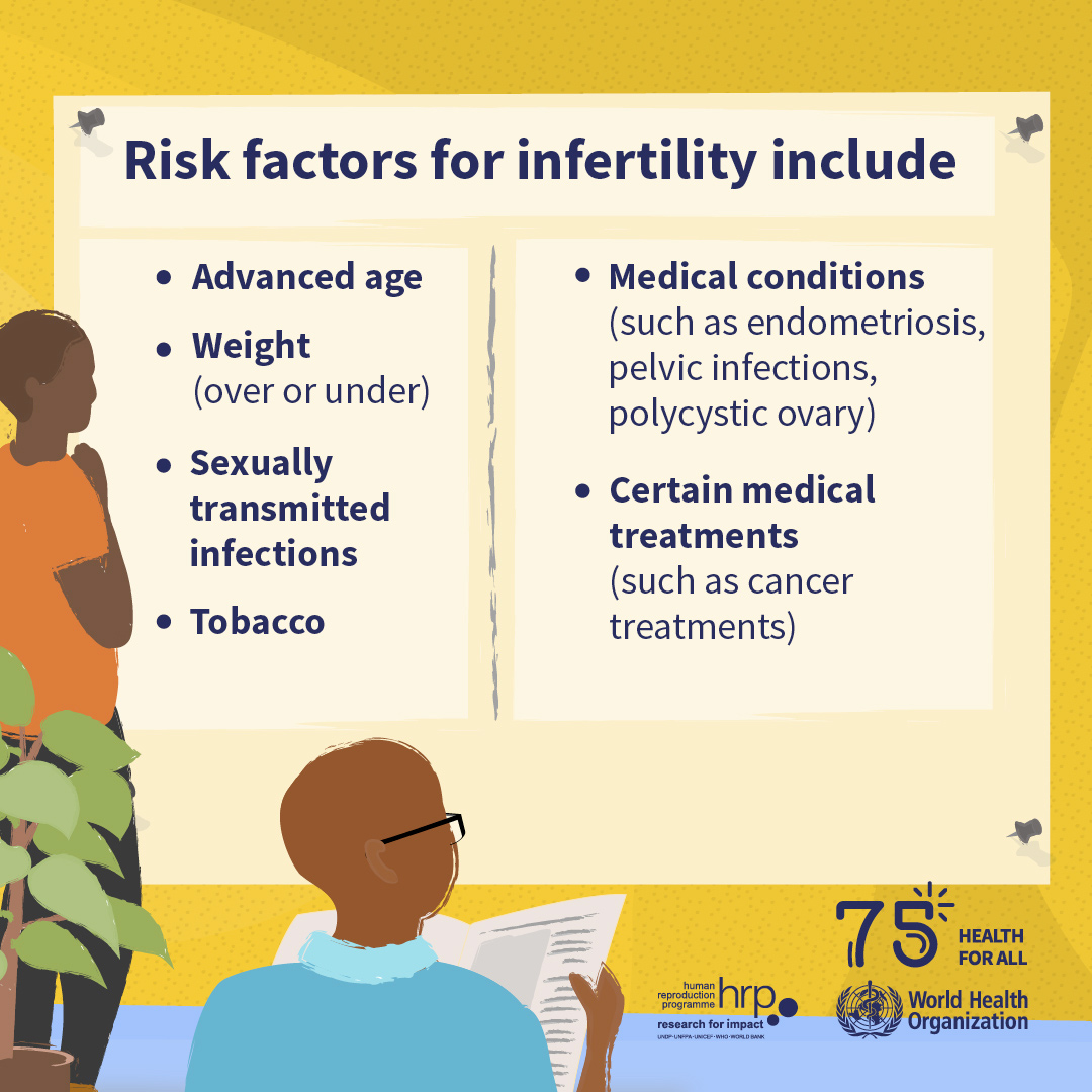 Risk factors for infertility include: 1 April 2023 | graphics (infographic) WHO Team Sexual and Reproductive Health and Research (SRH)