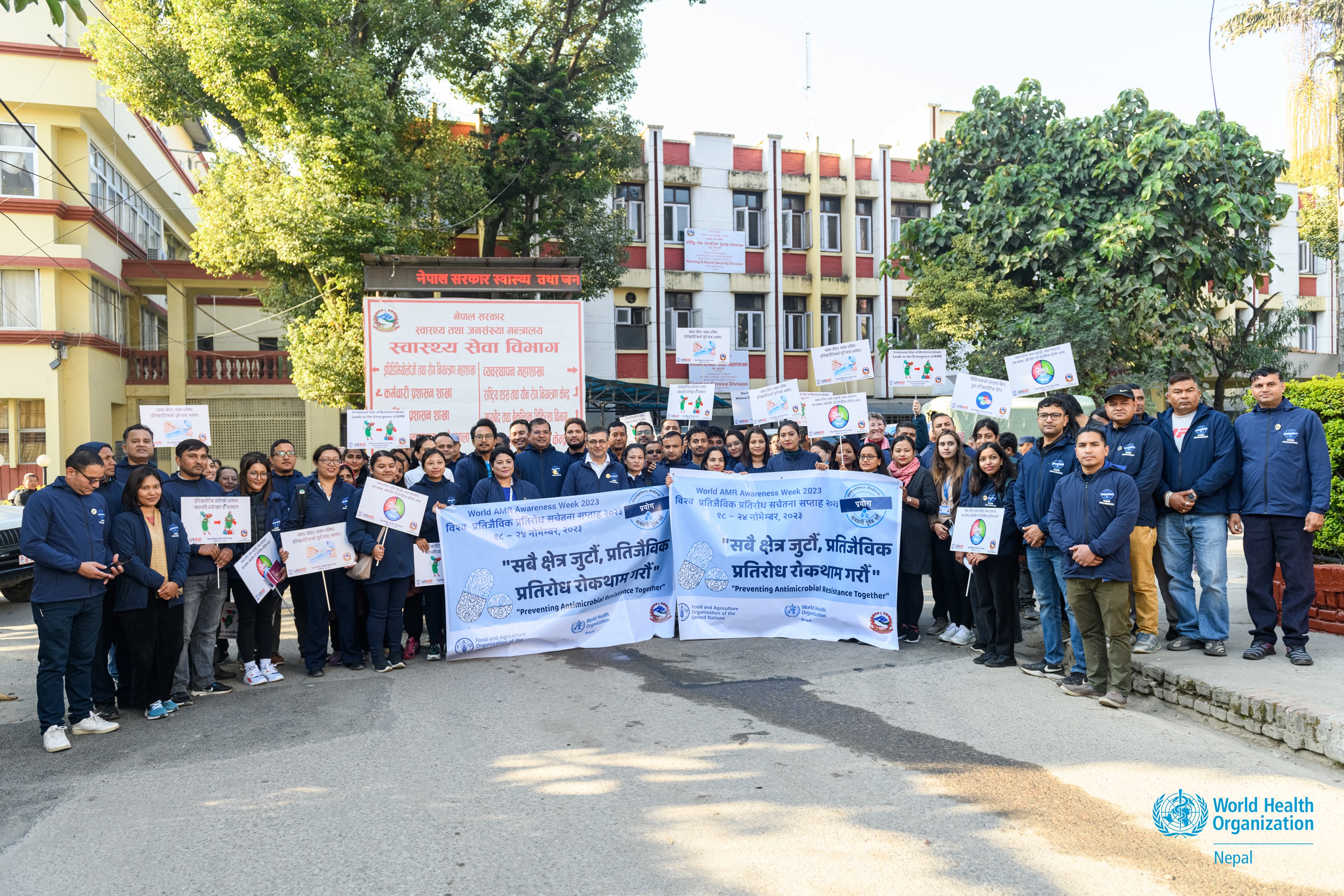 Commemoration of World AMR Awareness Week 2023 in the premises of the Department of Health Services, under Ministry of Health and Population, in Nepal. Photo credit: WHO Nepal