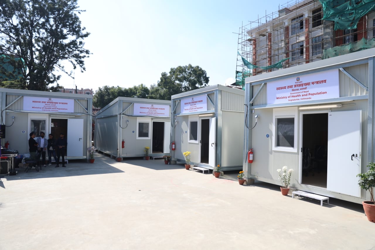 प्रिफ्याब्रिकेटेट मोड्युलबाट निर्माण गरिएका यी ६ वटा कार्यालय कक्ष मन्त्रालयको तत्काल आवश्यकतालाई ध्यानमा राखेर तयार गरिएको हो । नयाँ संरचनाले मन्त्रालयलाई स्वास्थ्य नीतिनिर्माण, समन्वय र सेवा प्रवाहसम्बन्धी महत्वपूर्ण कामहरूलाई निरन्तरता दिन सहयोग पु¥याउनेछ । हालैका प्रदर्शनका क्रममा मन्त्रालयको मुख्य भवन क्षतिग्रस्त भएपछि, मन्त्रालयको परिसरमै रहेको भवनको अस्थायी र सीमित ठाउँबाट सेवा सञ्चालन गर्दै आएको थियो ।