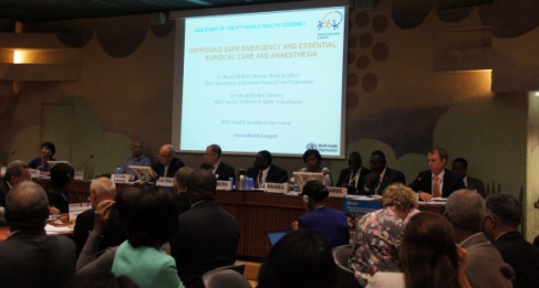 The WHO EESC Programme supported a Side Event of the 67th World Health Assembly, Organized by the delegations of Zambia, Nigeria, the United States of America, Rwanda, Kenya, Senegal, Australia, and the United Kingdom of Great Britain and Northern Ireland, the International College of Surgeons, International Federation of Surgical Colleges, International Society of Orthopaedic Surgery and Traumatology, and World Federation of Societies of Anaesthesiologists.
