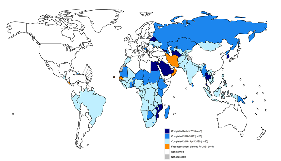 Global status of national TB epidemiological reviews and surveillance assessments, 2013 – April 2020