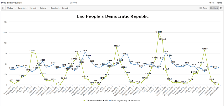 Figure 2: Example of links between climate and clinical outcomes as integrated into Lao People’s Democratic Republic’s Department of Health Information System.