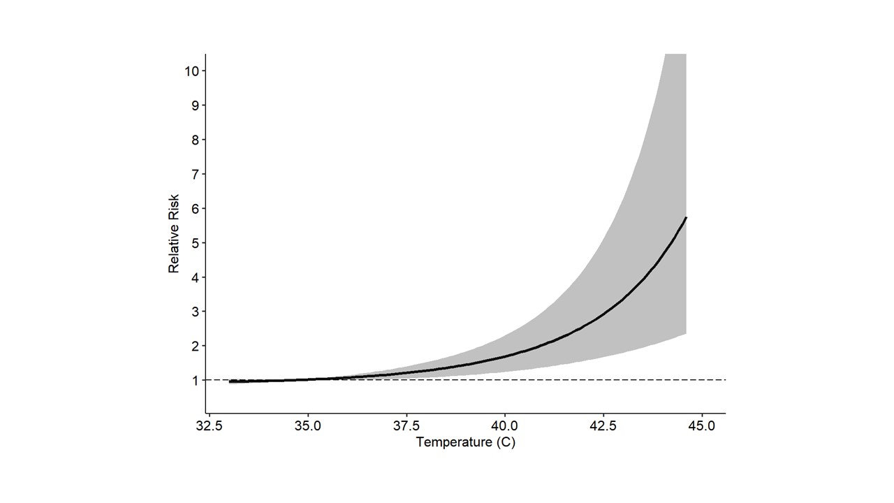 Figure: Relative risk of dying from heart disease and extremely hot temperatures in Kuwait.