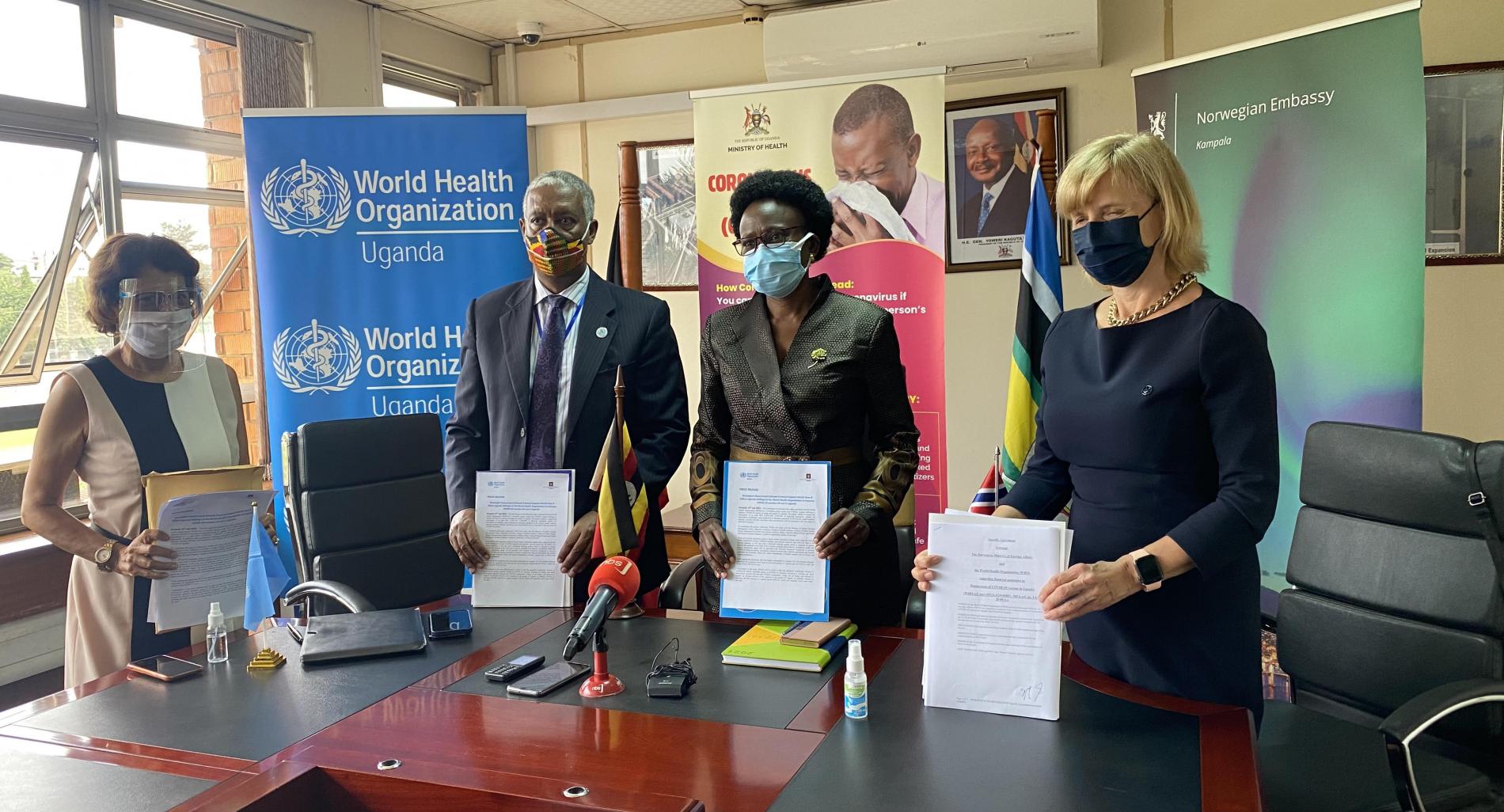 The Norwegian Government has partnered with WHO in a 12-month project to improve COVID-19 vaccine coverage and uptake in Uganda. The project aims to support the vaccination of at least 60% of people who are highest risk people. As soon as supplies permit, health workers, teachers, security officials and others with underlying conditions will be vaccinated.