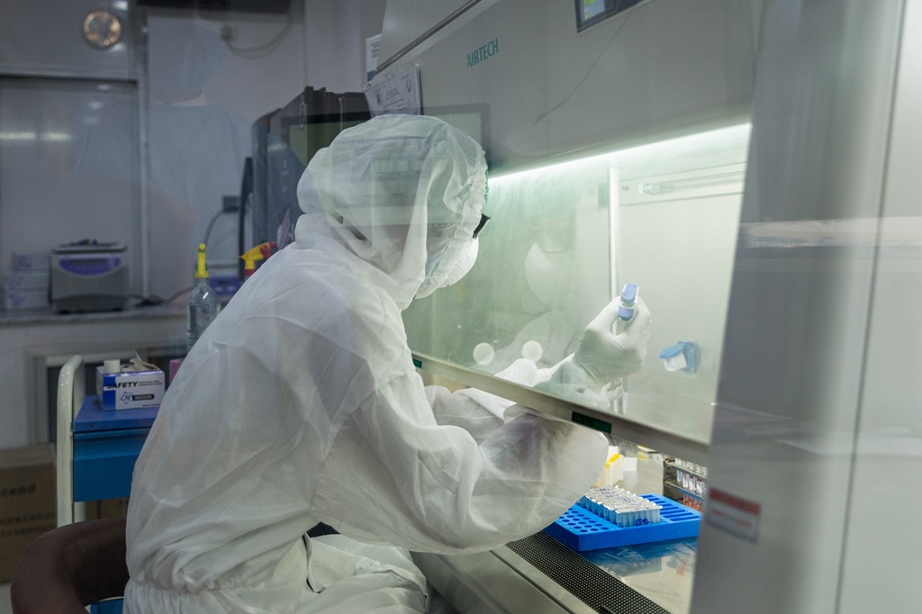 Biotechnologist Shafeeq works in the genome extraction laboratory for COVID-19 at Khyber Teaching Hospital in Peshawar, Pakistan. © WHO / Blink Media – Saiyna Bashir