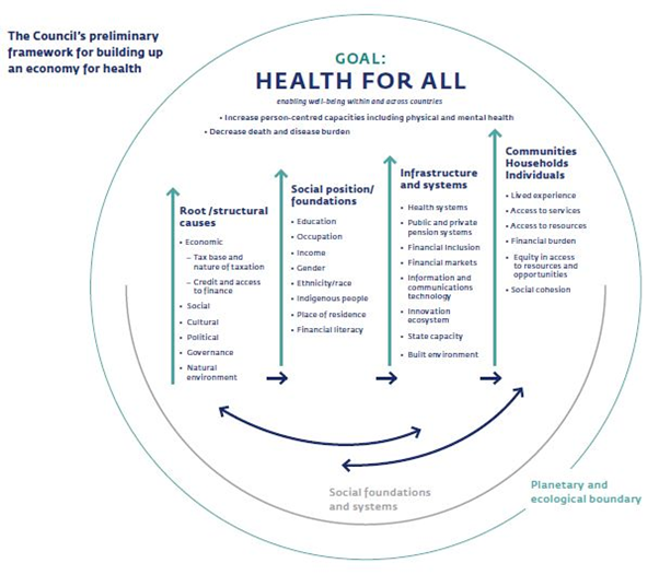The Council also produced numerous articles and statements outlining its vision and evidence for an economic system based on values that promote health for all, and a framework for building up an economy for health.