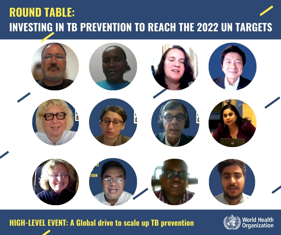 Following the launch of the Call to Action, a roundtable discussion was held with the Global Fund, Stop TB Partnership, USAID, US President's Emergency Plan for AIDS Relief (PEPFAR) and UNITAID, on mobilizing increased resources and investments for TB prevention. This was prompted by an impassioned plea for resources for TB preventive treatment from a South African community nurse, based on her experiences on the ground.